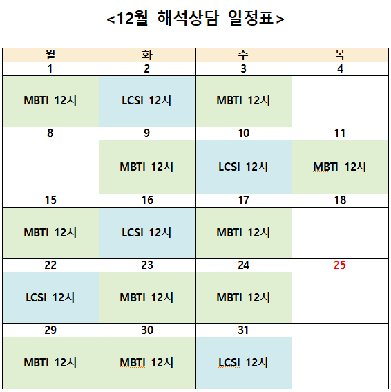 12월 심리검사(인성검사) 신청 안내