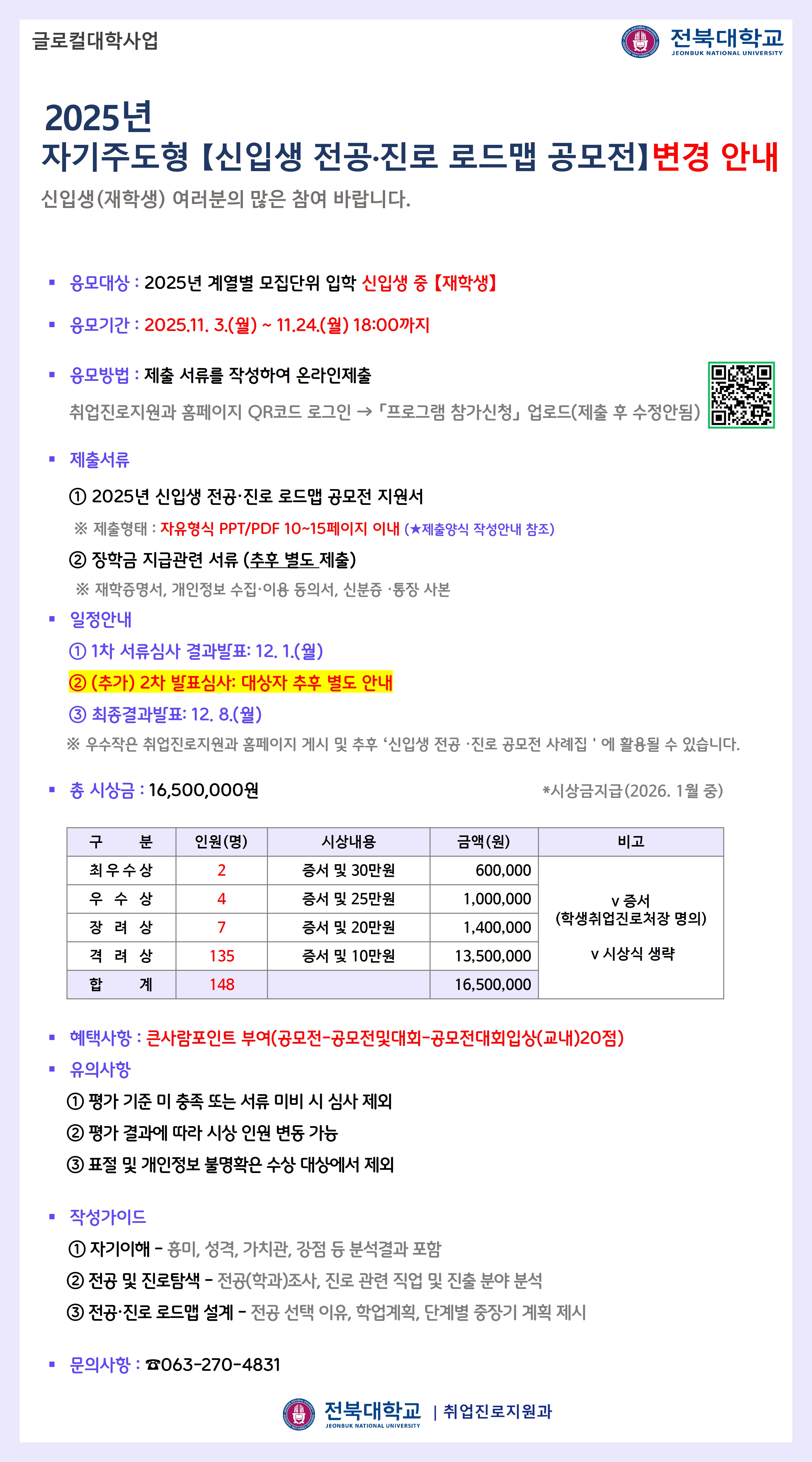 【20포인트지급】 2025년 신입생 전공·진로 로드맵 공모전 응모 안내