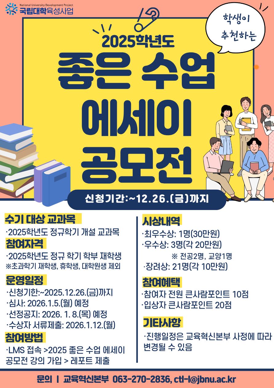 확산하고자 좋은 수업 에세이 공모전을 운영합니다. 학생들의 많은 관심과 참여 부탁드립니다.