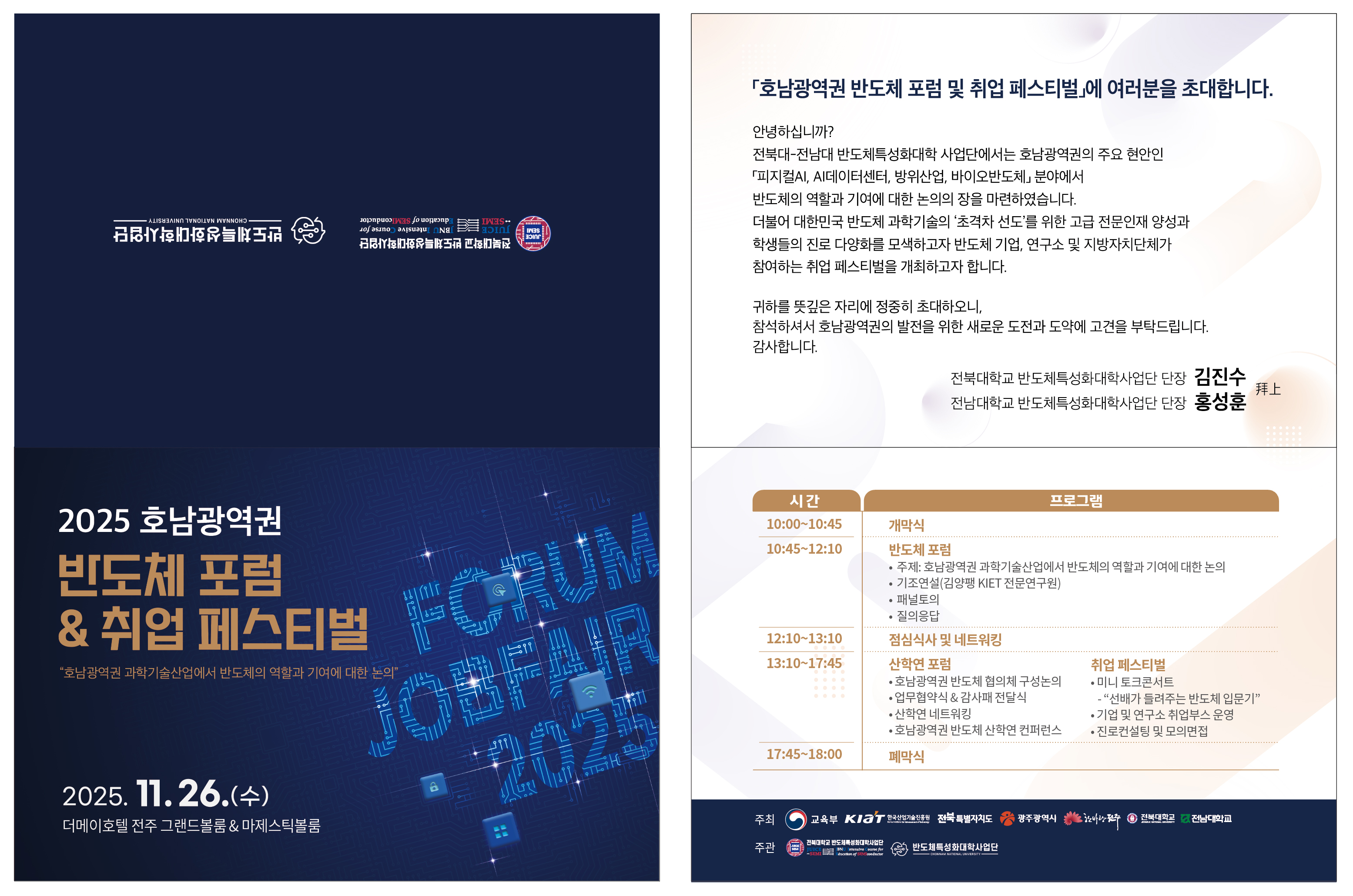 전북대학교와 전남대학교가 오는 26일 전주 더메이호텔에서 지자체·연구기관·기업을 총망라한 ‘호남광역권 반도체 포럼 & 취업페스티벌’을 개최한다.