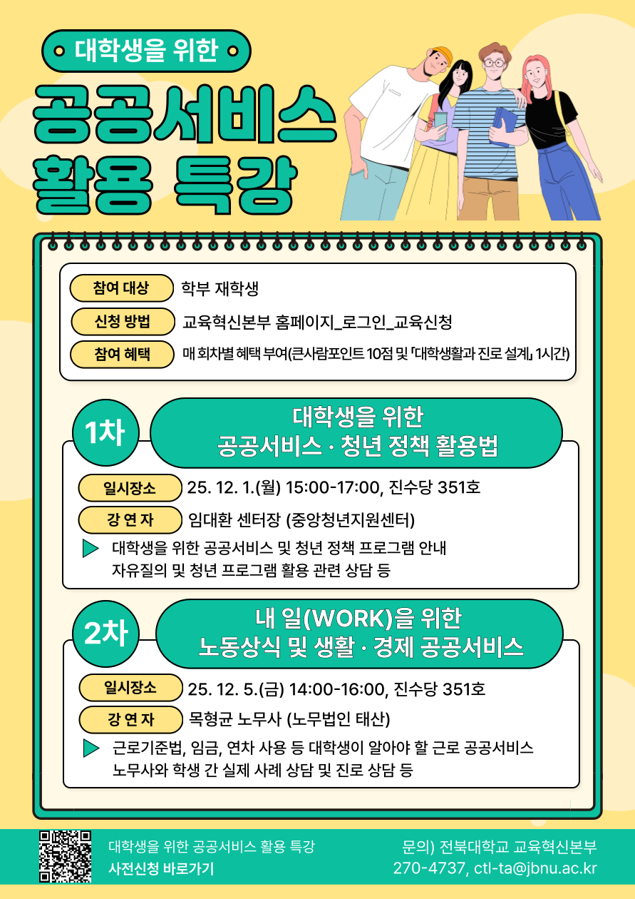 2. 2025학년도 대학생을 위한 공공서비스 활용 특강 운영 안내 포스터 1부. 끝.