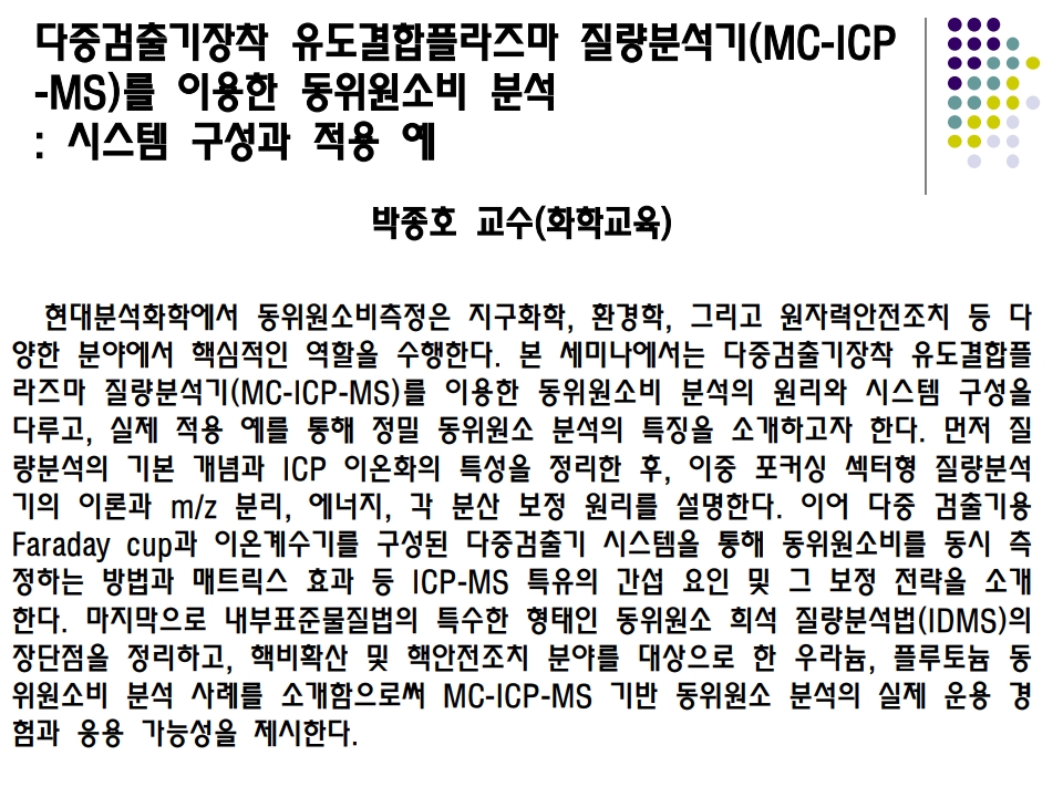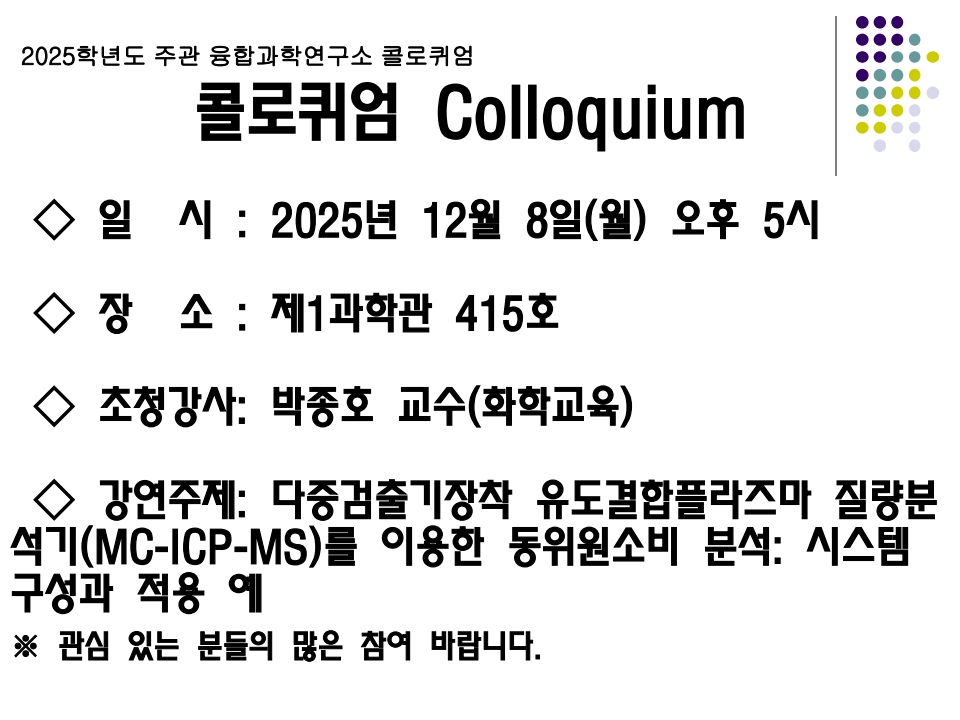 2025학년도 과학교육학부 콜로퀴엄(융합과학연구소)