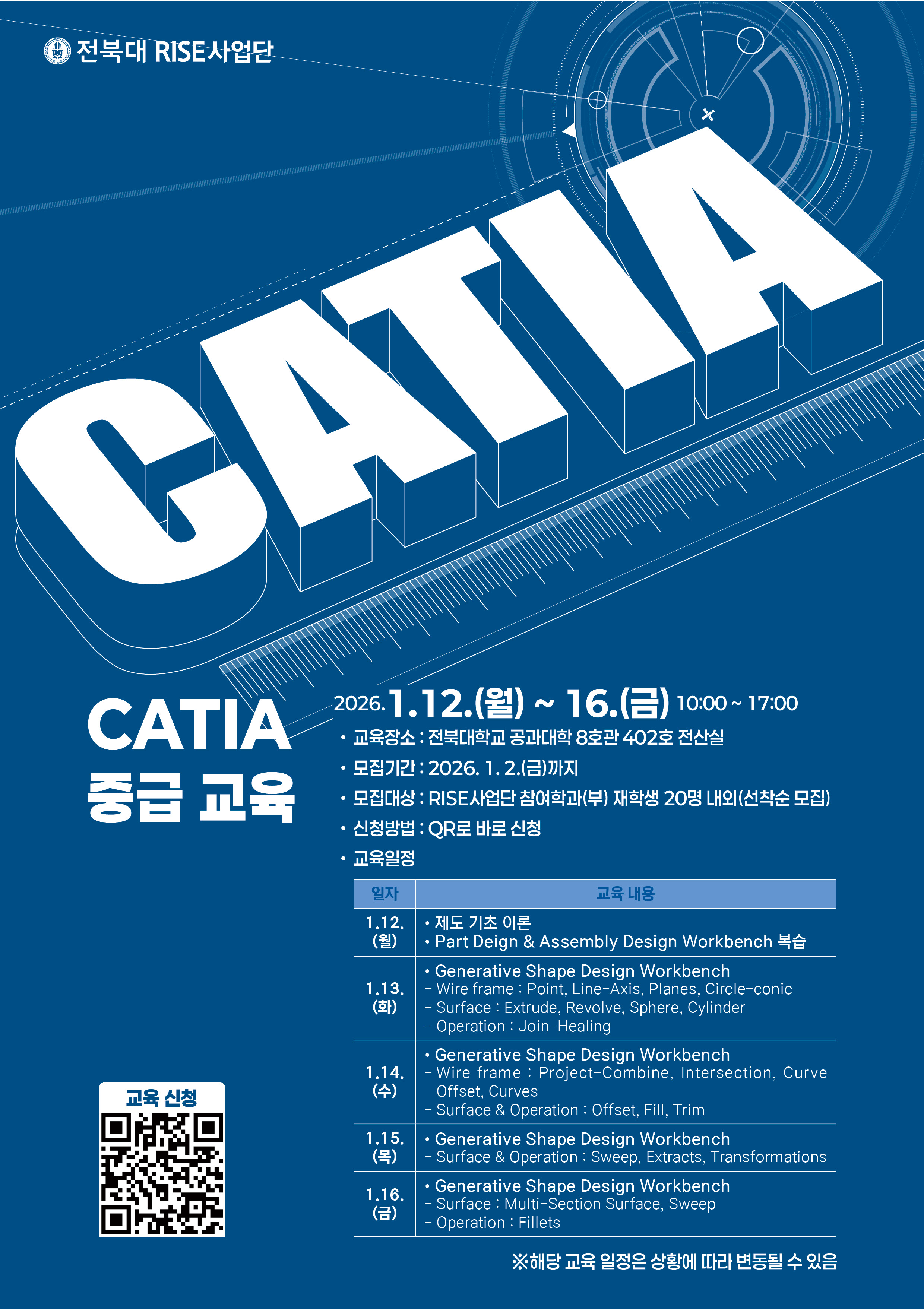 - 교육장소: 전북대학교 공과대학 8호관 402호