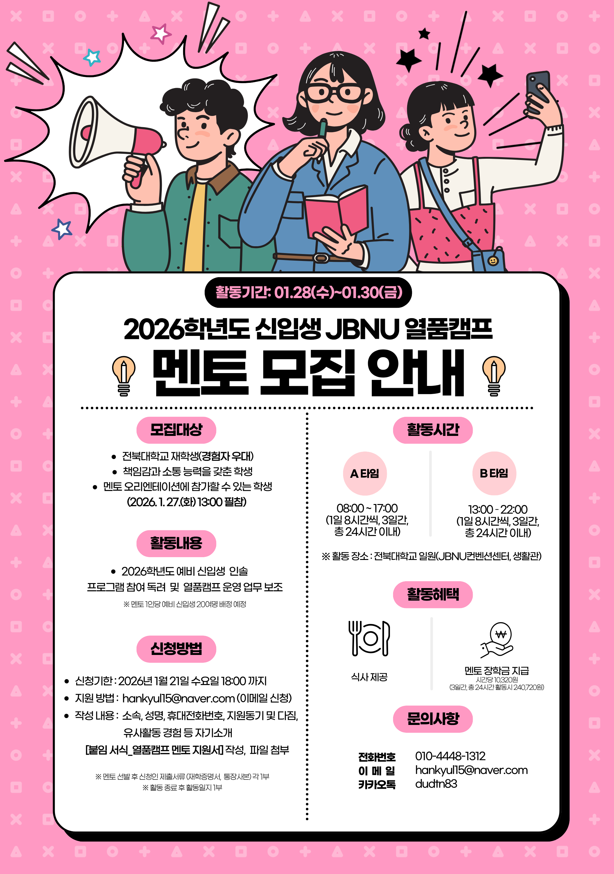 <2026학년도 신입생 JBNU 열품캠프와 함께할 멘토를 모집합니다!>
