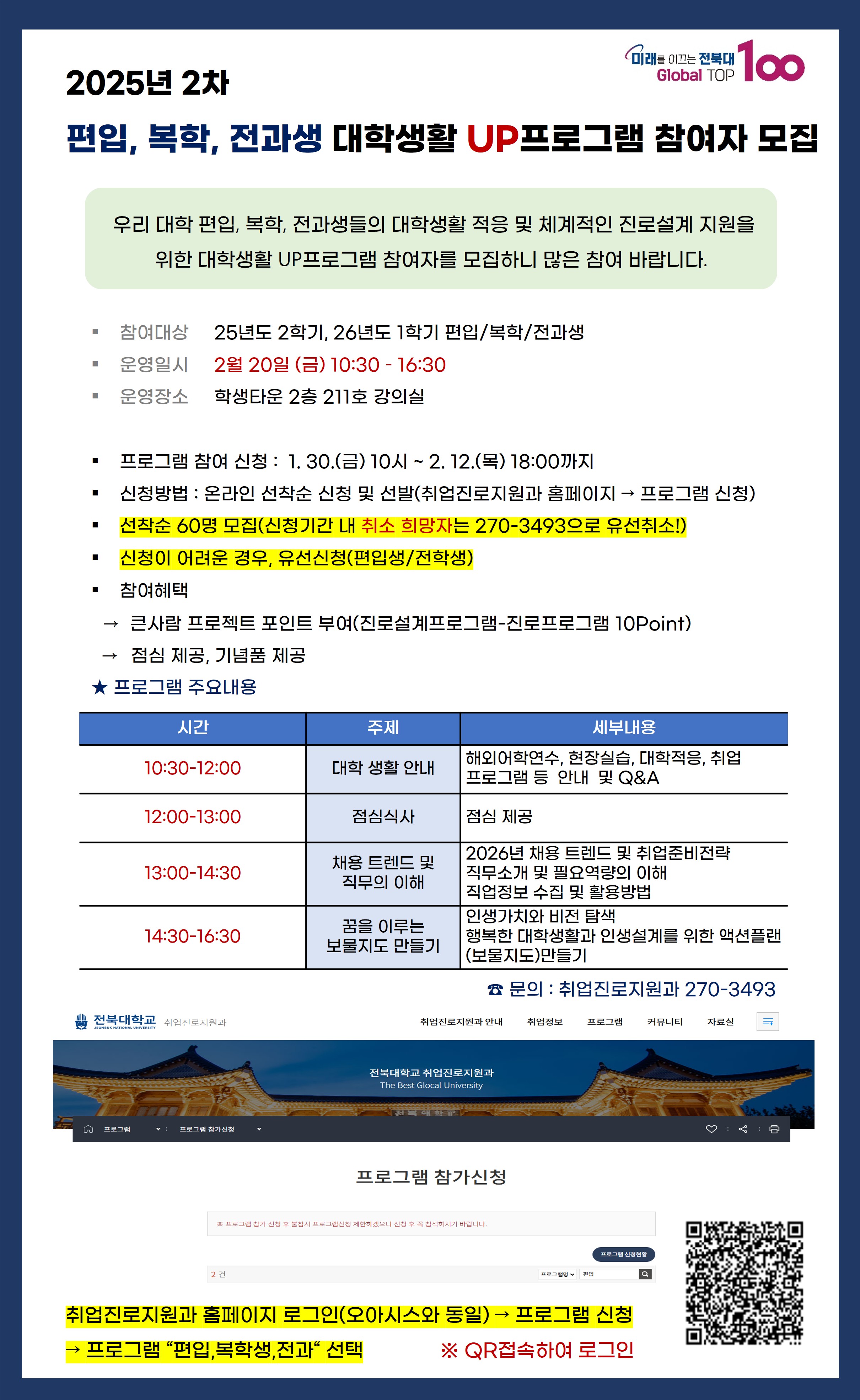 (재안내)2025학년도 2차 [편입&복학&전과생 대학생활 적응 UP 프로그램] 참여자 모집