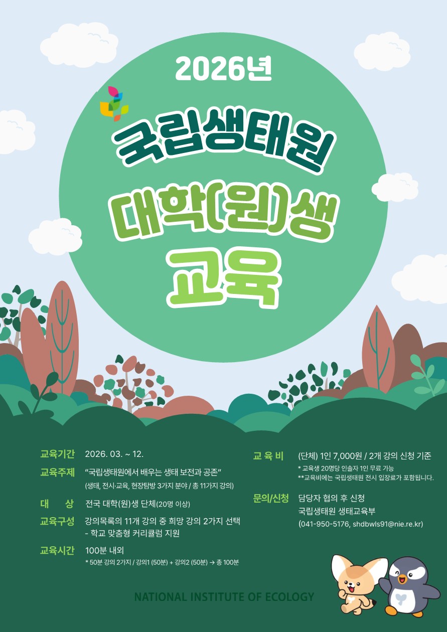 (국립생태원) 2026년 국립생태원 대학(원)생 교육 안내