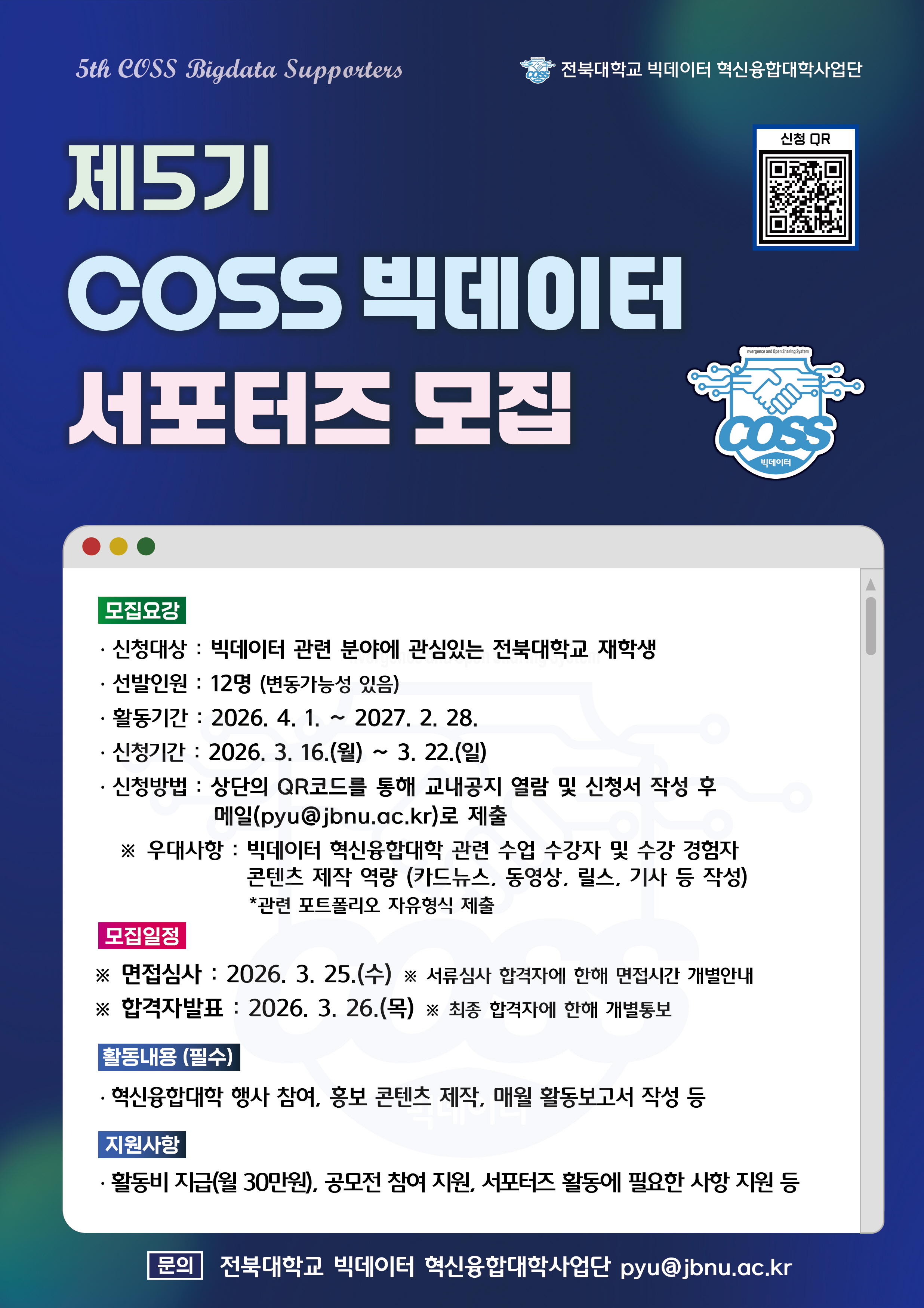 [빅데이터 혁신융합대학] 2026년 제5기 COSS 빅데이터 서포터즈 모집 안내(재안내)
