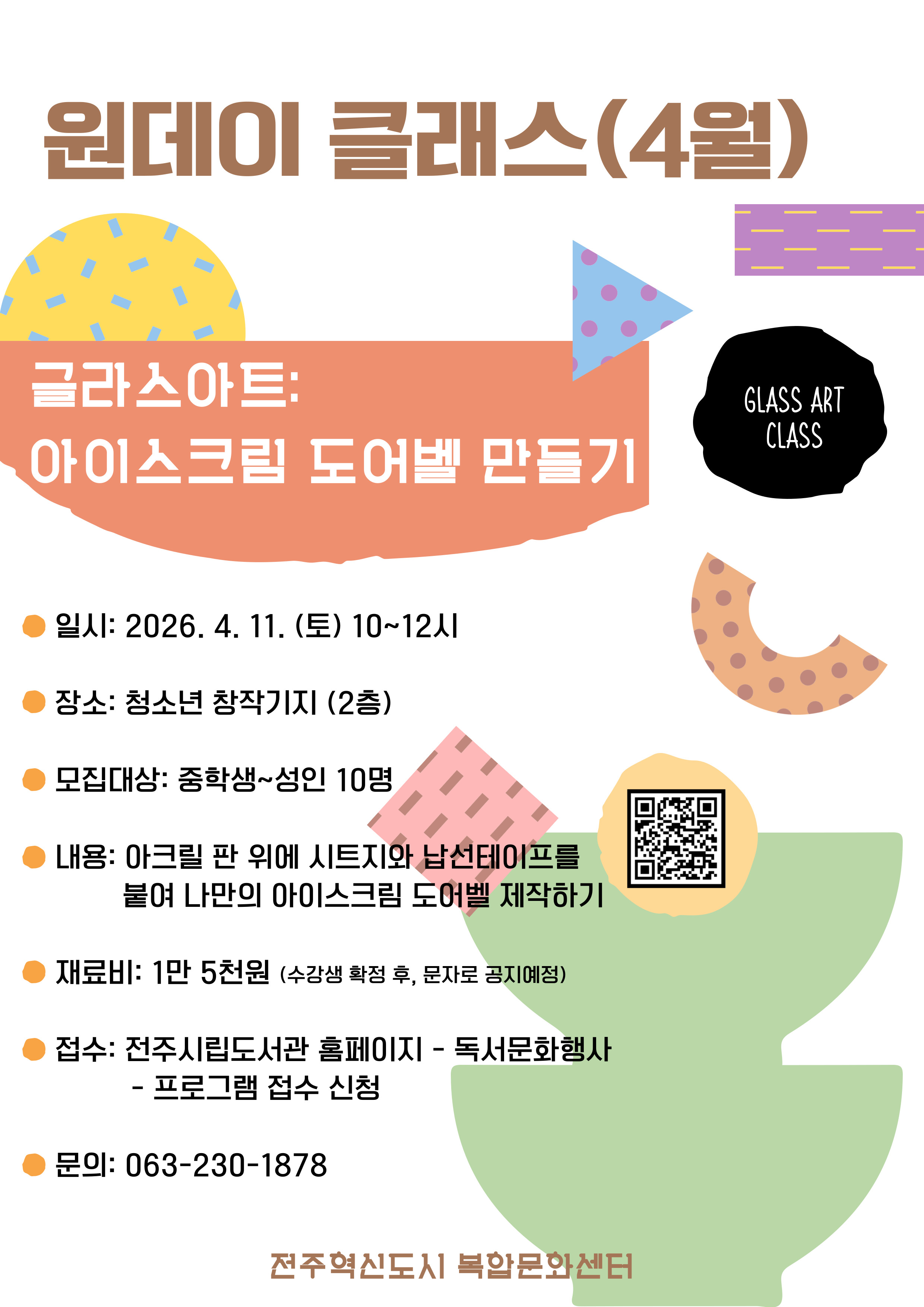전주혁신도시 복합문화센터 청소년 창작기지 상반기 원데이 클래스(4월) 안내입니다.