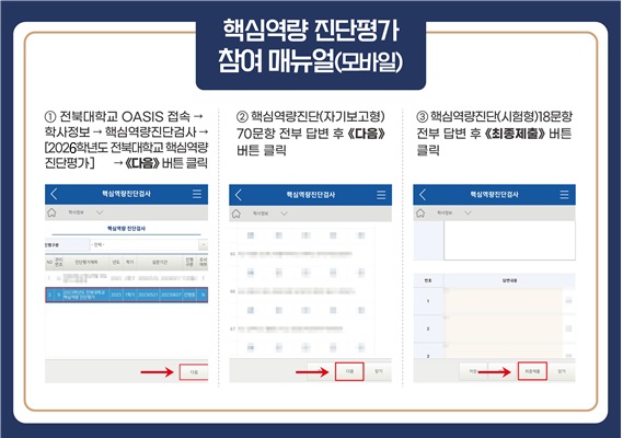 2026학년도 신입생(1학년) 6대 핵심역량 진단평가를 아래와 같이 실시하오니, 신입생(1학년) 여러분들의 많은 참여바랍니다.