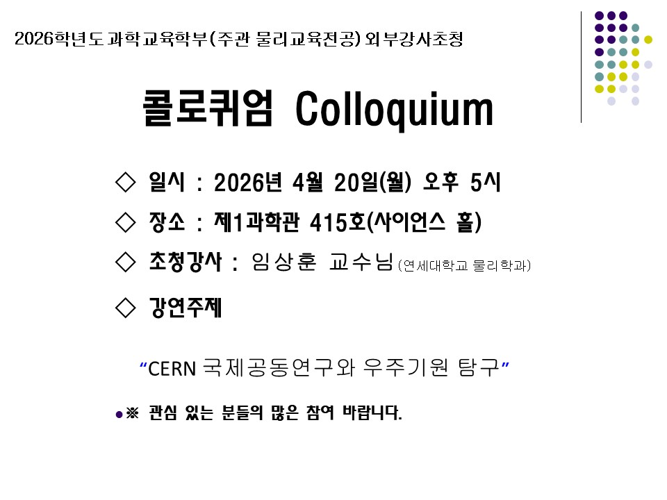 2026학년도 과학교육학부 (주관 물리교육전공) 외부강사초청