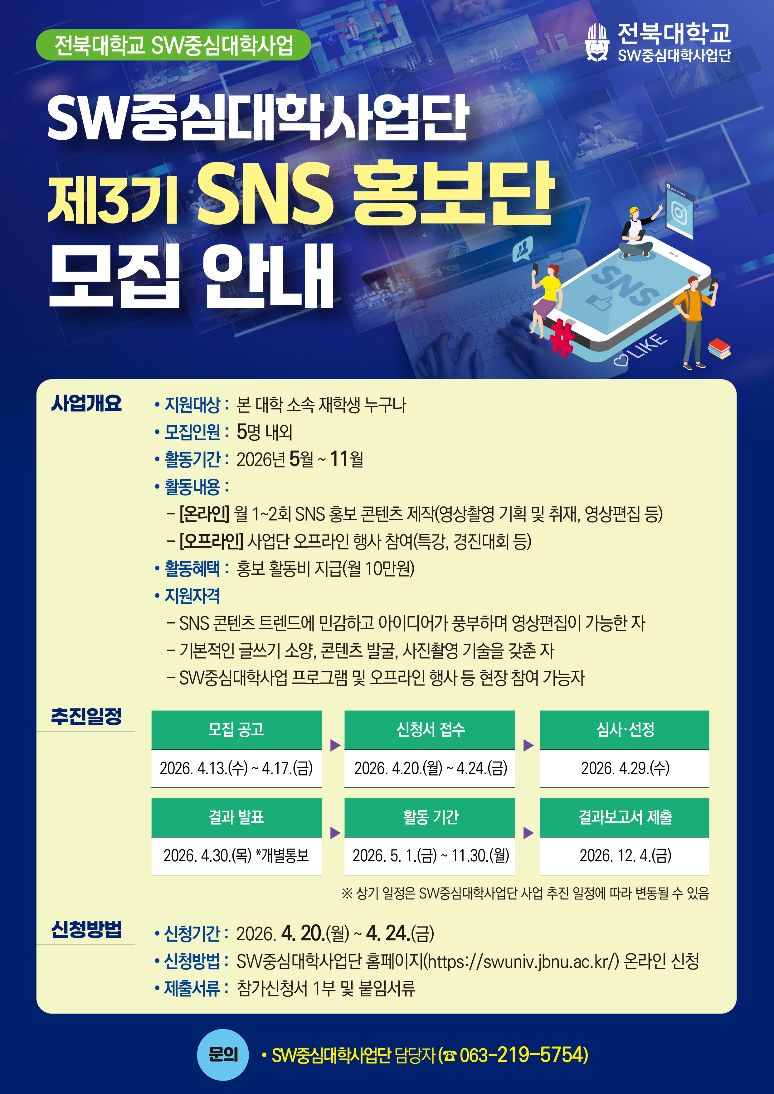 [SW중심대학사업단] 제3기 SNS 홍보단 모집 안내