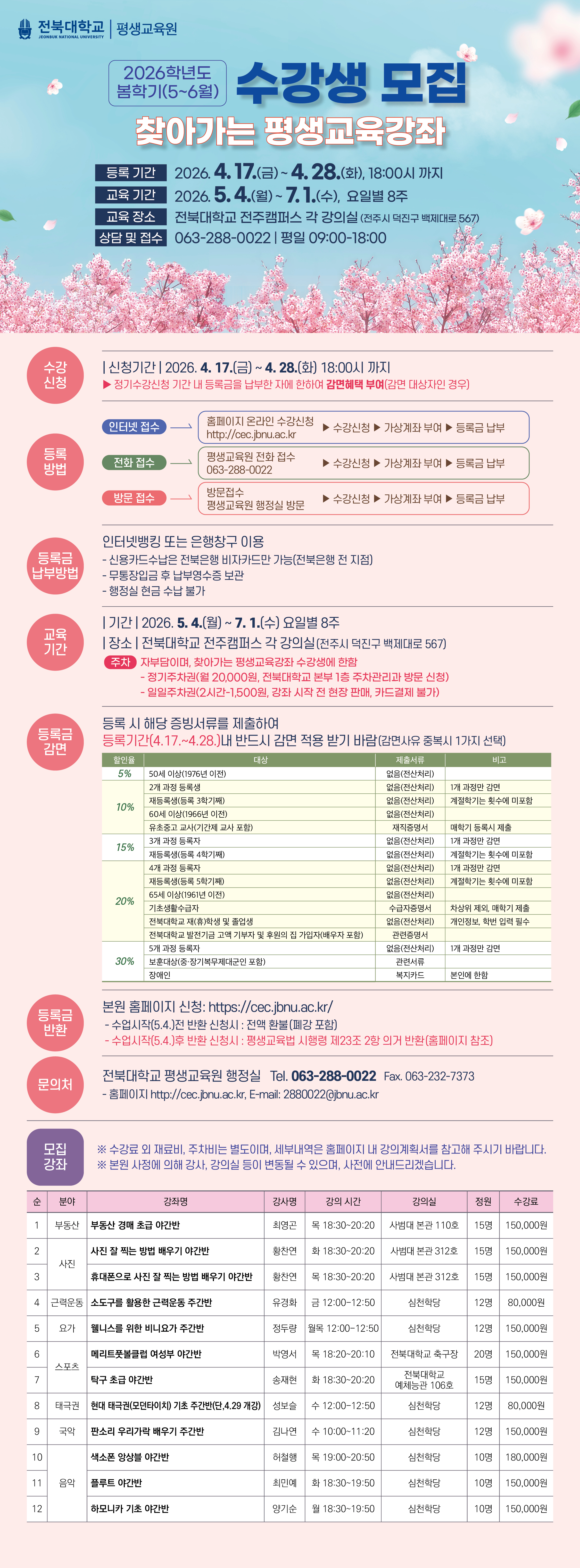 2026학년도 1학기(5~6월) 찾아가는 평생교육강좌 수강생 모집합니다.