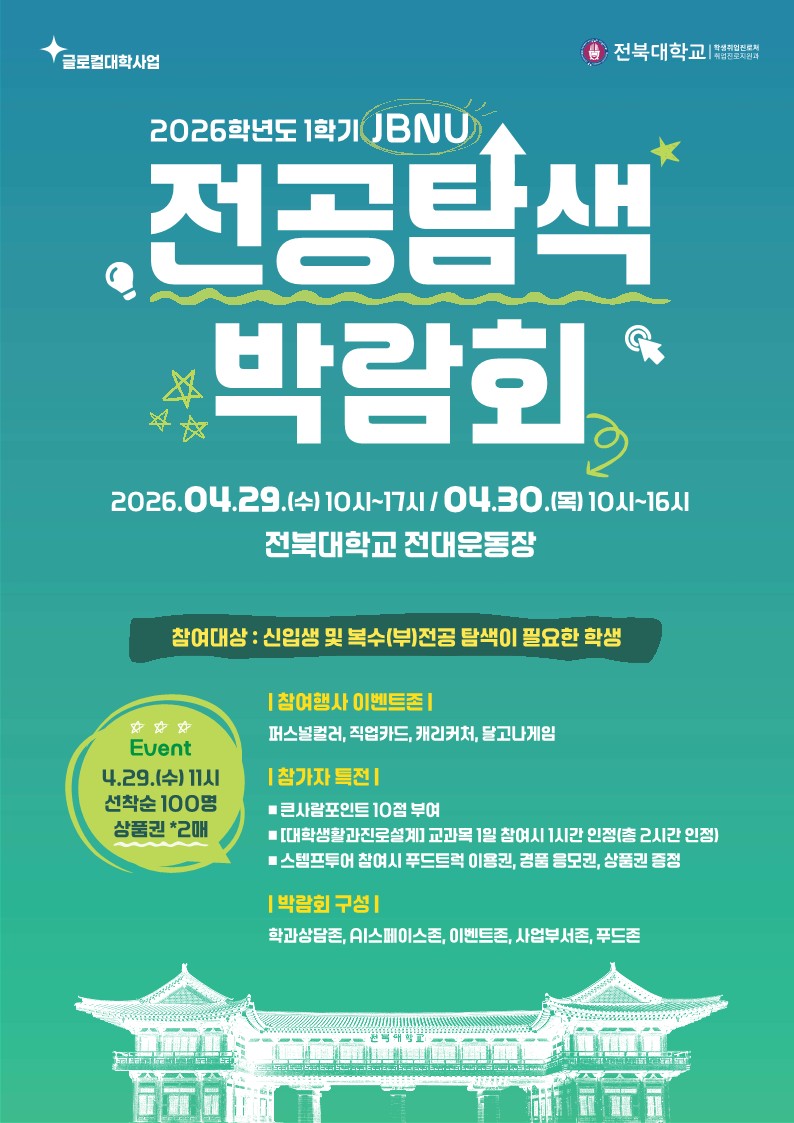 2026학년도 1학기 JBNU 전공탐색박람회 개최 안내