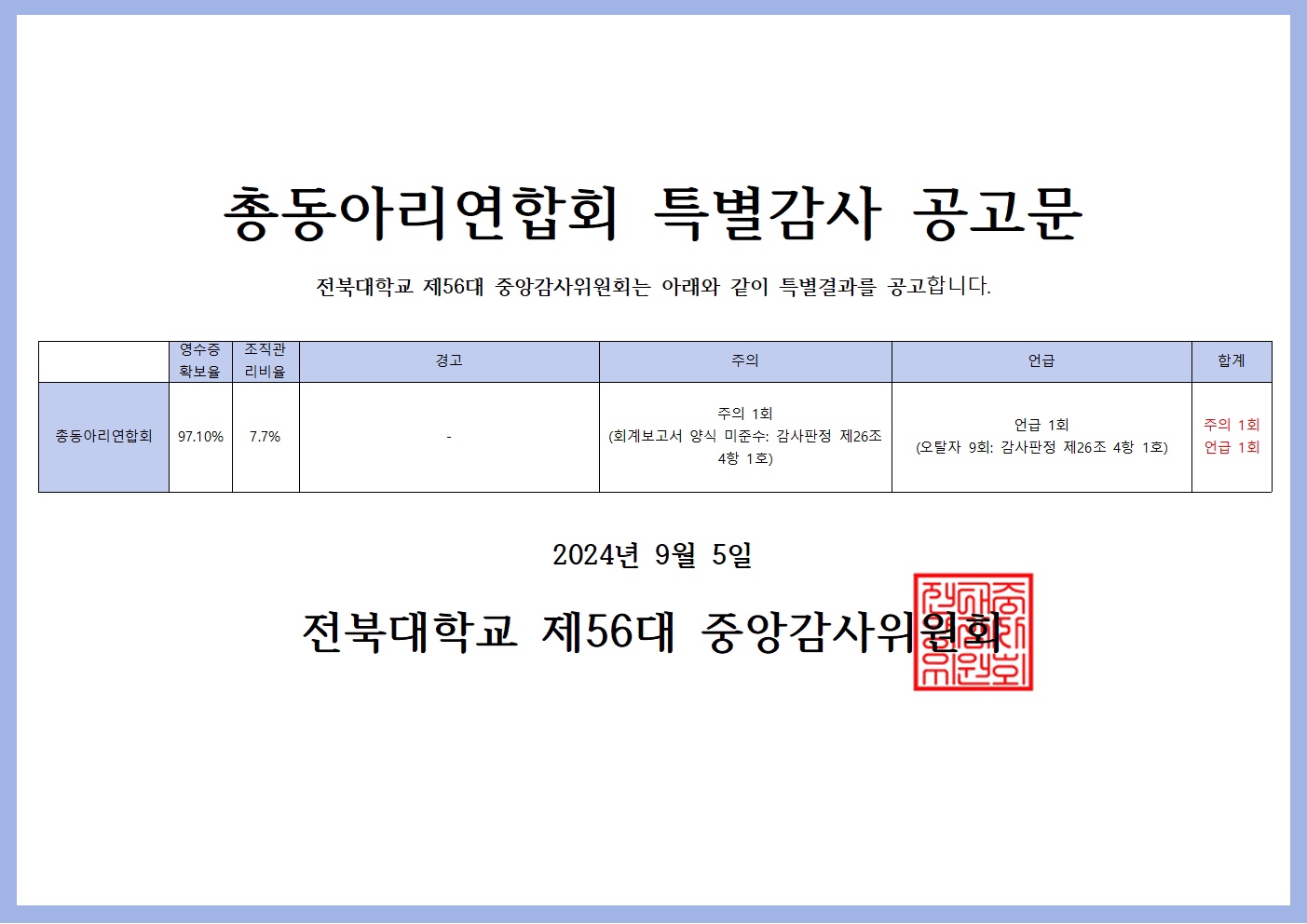 [총동아리연합회 특별감사결과 공고문]