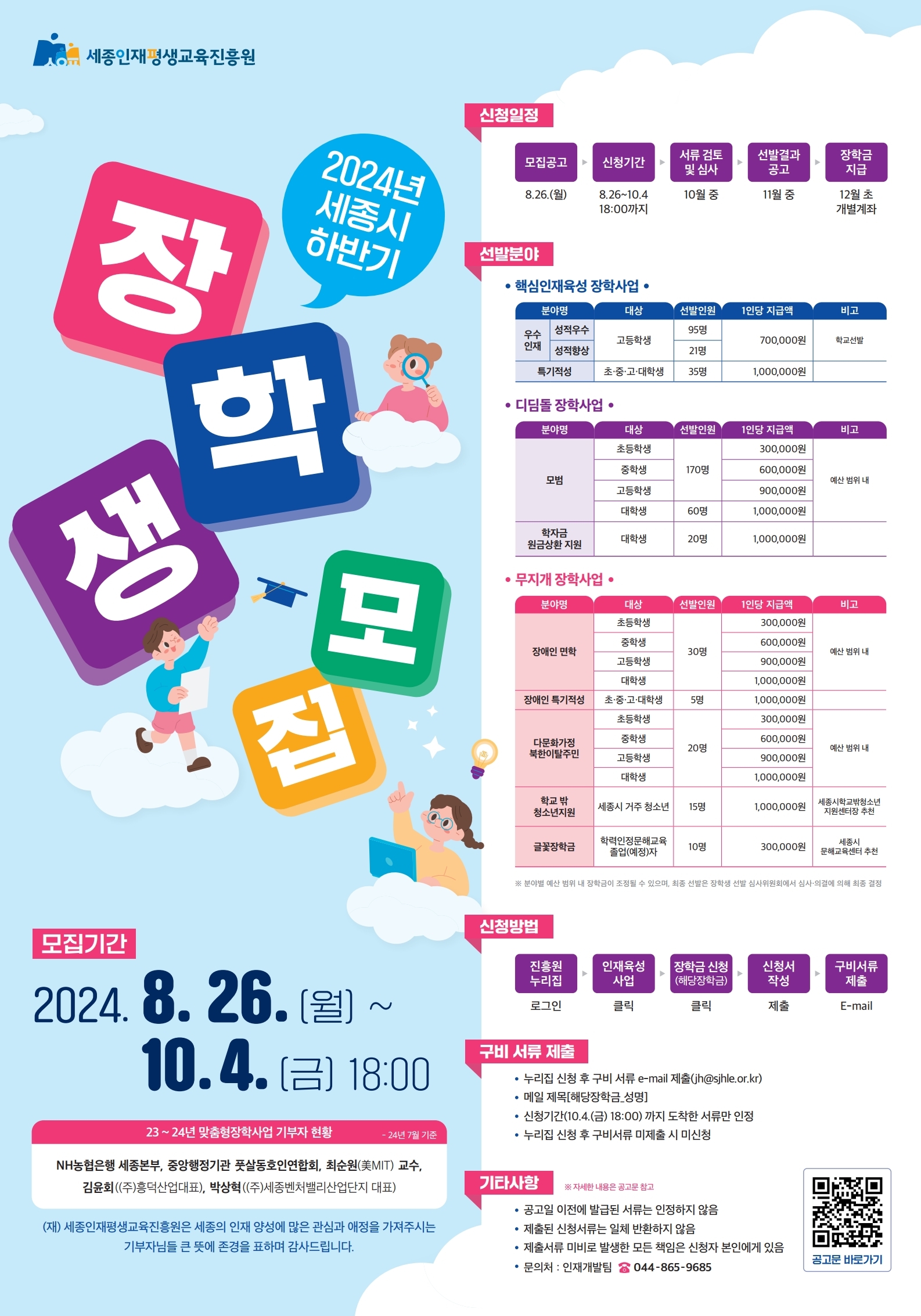 [붙임1] 2024년도 하반기 장학생 선발계획 공고.pdf (267.2KB)
