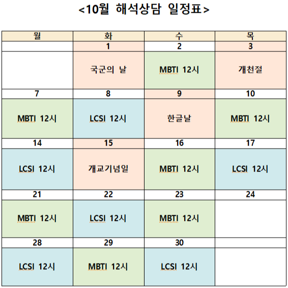 10월 심리검사(인성검사) 신청 안내