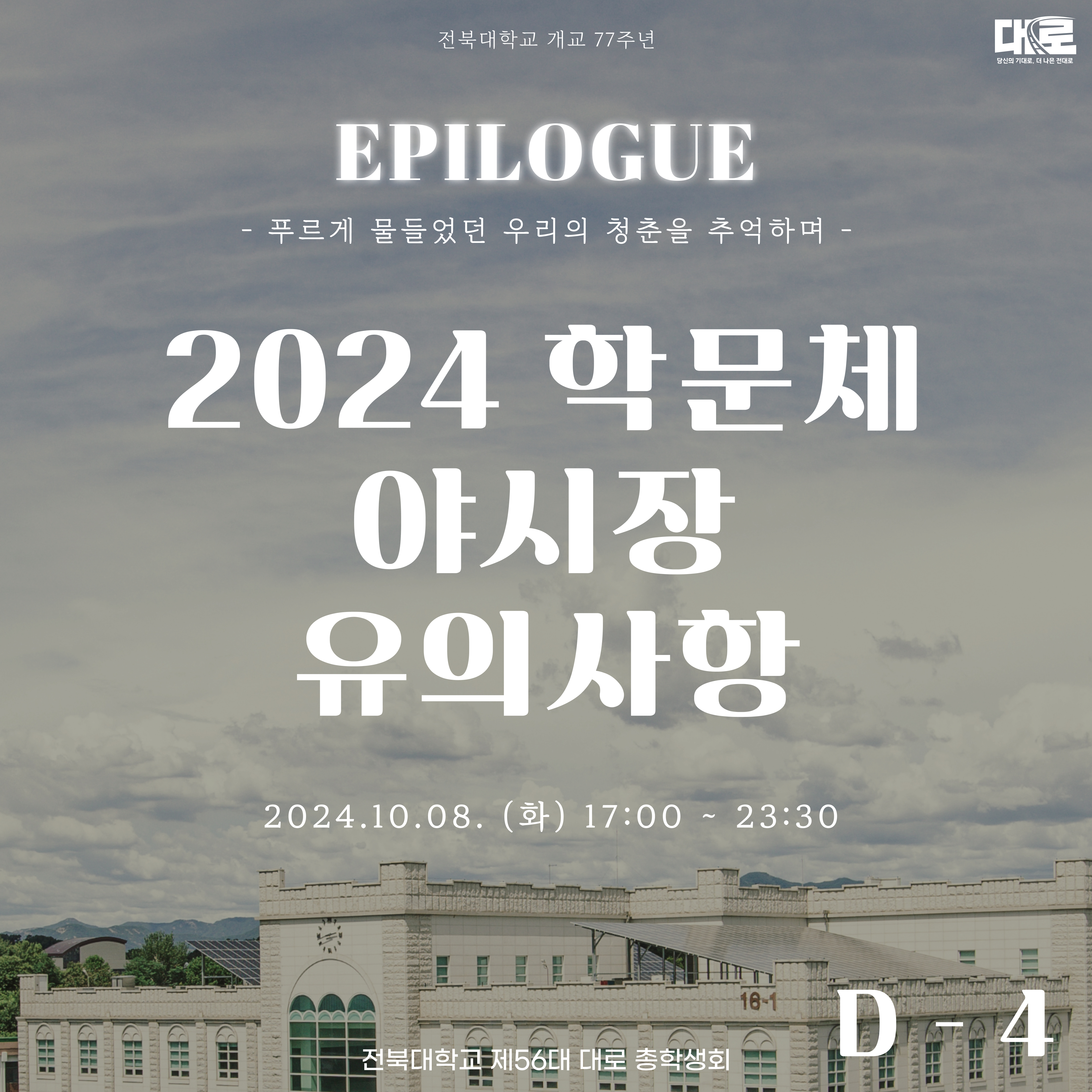 전북대학교 소운동장에서 진행되는 2024 학문체 : EPILOGUE 야시장의 유의사항을 안내해드리겠습니다.