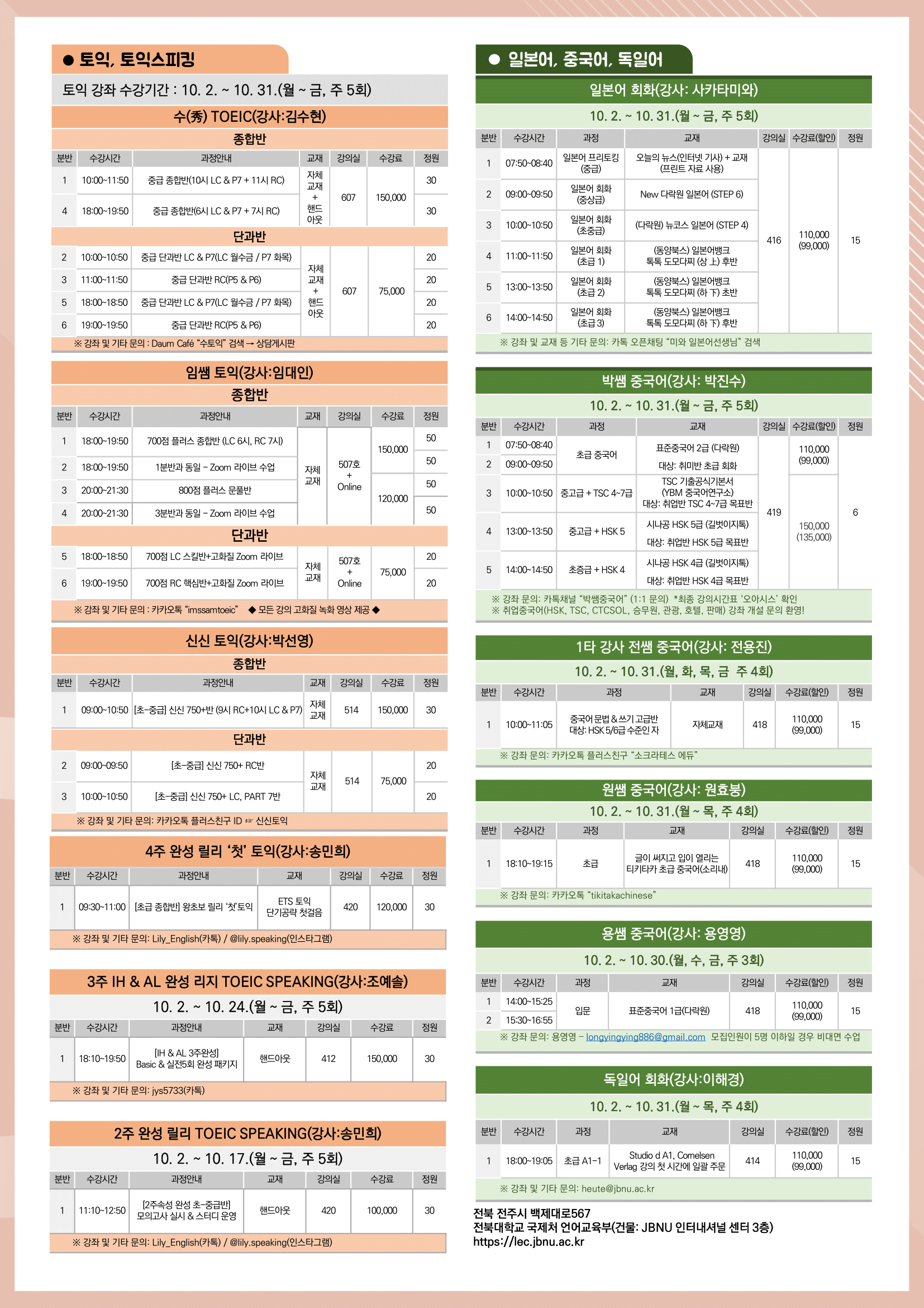 모두의 안전 그리고 모두가 어학교육을 누릴 수 있도록 많은 협조 부탁드립니다.