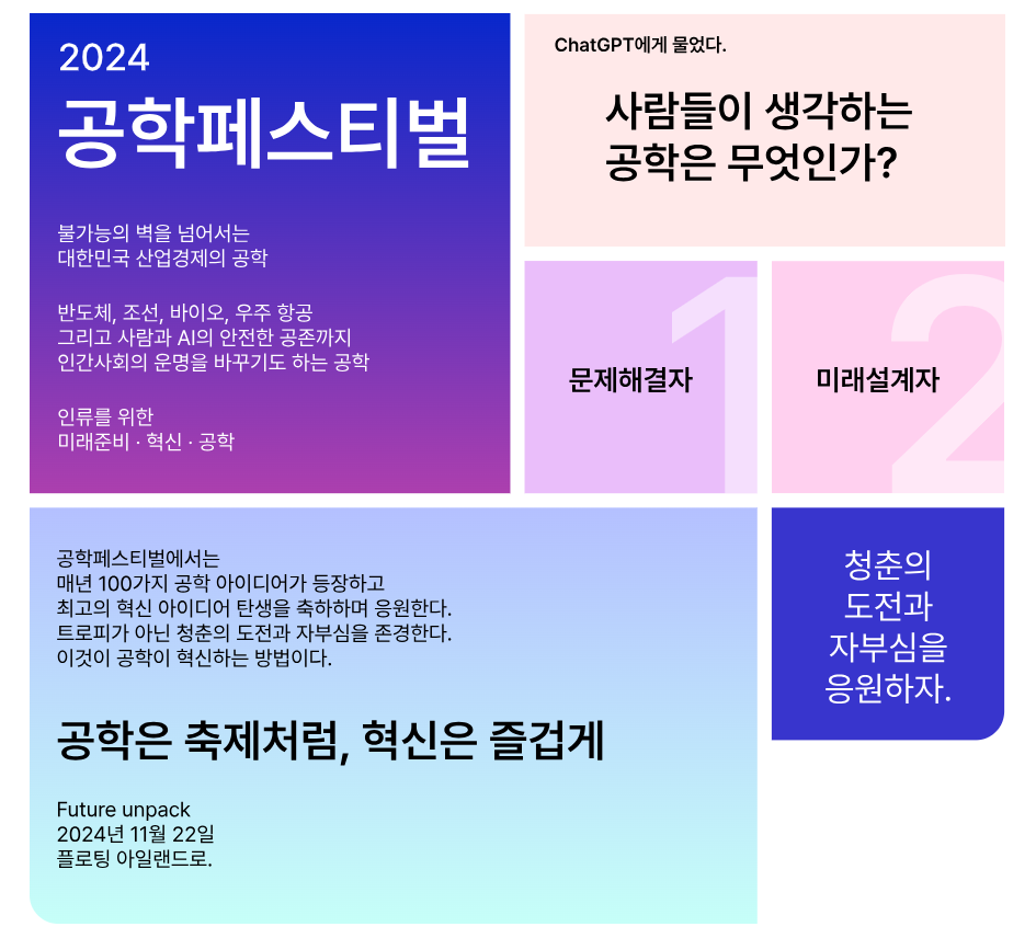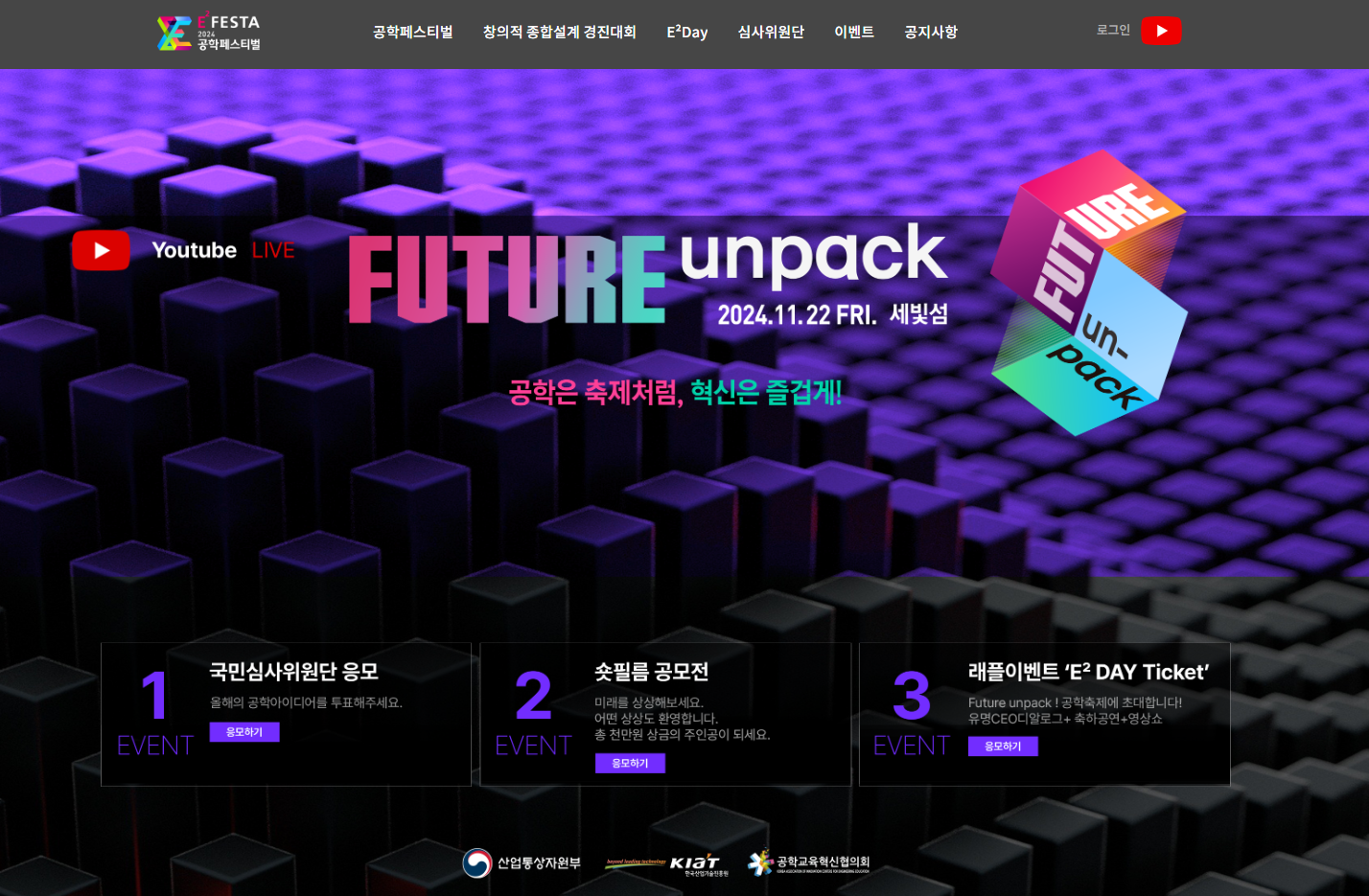 - 공학페스티벌 공식 홈페이지: (클릭→) 2024 공학페스티벌 :: 홈 (e2festa.kr)