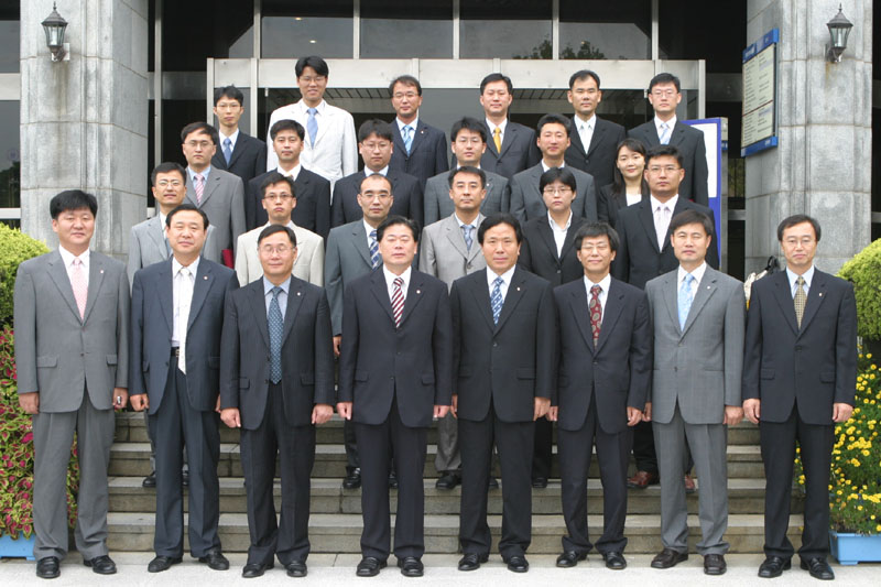 넷째줄 왼쪽부터 박호성, 이민로, 여종문, 진명호, 김재철, 손현진 신임교수