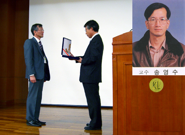 또한 이날 송영수 교수가 지도교수로 있는 물리탐사실험실의 석사 2학년인 김종욱 군이 '암석의 일축압축시 파괴로 발생하는 미소 전기적 신호 측정'이라는 주제의 논문으로 학생 우수논문 발표상을 수상하였다.