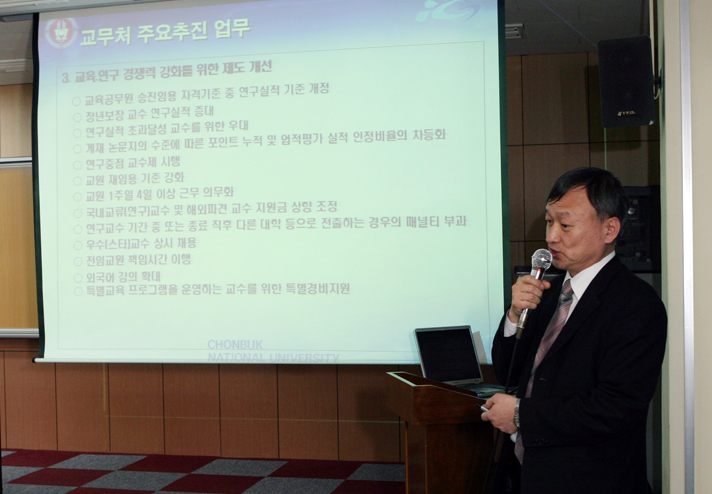 이와 관련 서 총장은 “이번 대학 경쟁력 강화 방안은 대학의 위상을 높이고 경쟁력을 강화시키기 위해 반드시 추진해야할 사업”이라고 강조한 뒤 “구성원들의 의견과 다른 지역 거점 국립대의 사례들을 분석해 최종안을 마련하겠다”고 밝혔다. 서 총장은 또 “우리 대학이 명문 대학의 반열에 오르기 위해서는 변화와 혁신을 중단해서는 안 된다”는 점을 강조했다.