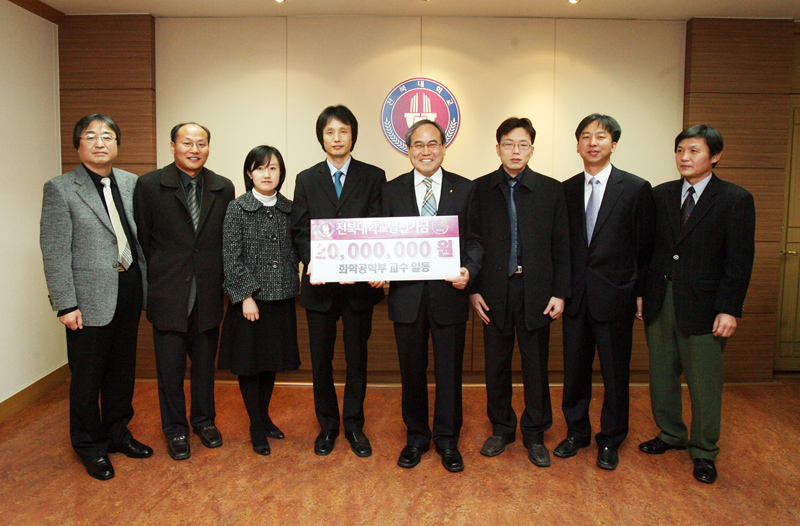 우리 대학 화학공학부 교수 일동이 2일 오전 서거석 총장을 찾아 발전기금 2천만원을 쾌척했다.