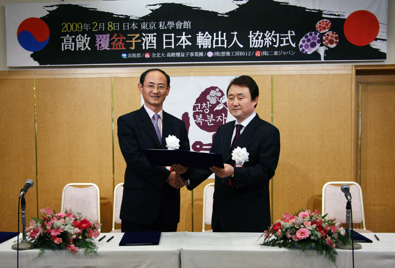 우리 대학 고창복분자진흥사업단(단장 이헌상)이 8일 오후 일본 내 주류 유통 전문업체인 (주)이동재팬과 MOU를 체결하고 3년간 3억엔(한화 약 45억원) 가량을 수출키로 했기 때문이다.