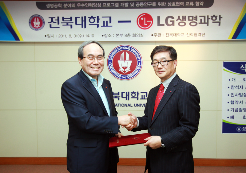 이날 협약식에서 서거석 총장은 “LG 생명과학은 생명공학 분야 세계 수준의 기술을 보유하고 있고, 우리대학 역시 분자생물학과를 중심으로 국가사업인 유용단백질 생산기술 연구사업 수행하는 등 첨단 연구를 하고 있다”며 “우리나라 생명과학 분야를 이끌어 가고 있는 양 기관의 협력은 국가 경쟁력을 한 차원 높일 수 있는 시너지 효과를 창출할 수 있을 것으로 기대된다”고 말했다.