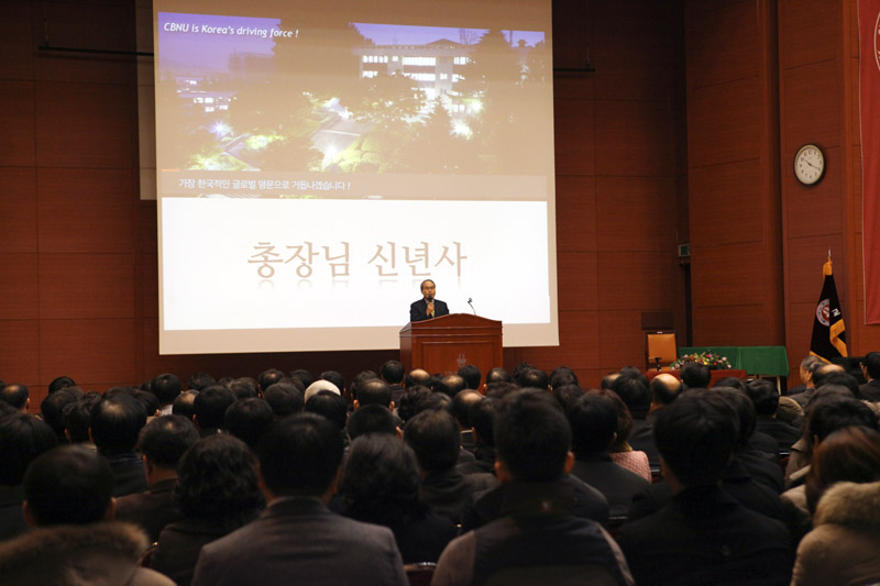 우리대학이 1월 2일 오전 10시 진수당 가인홀에서 서거석 총장을 비롯해 본부 보직교수, 단대학장, 교직원 등 500여명이 참석한 가운데 시무식을 갖고 2013년을 힘차게 시작했다.