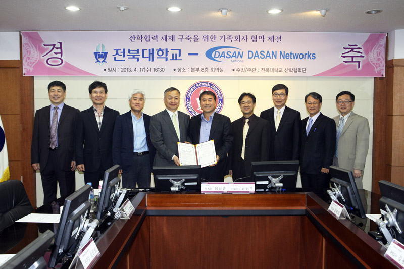 양 기관은 4월 17일 오후 4시 30분 본부 8층 회의실에서 정항근 전북대 부총장과 (주)다산 네트웍스 남민우 대표이사를 비롯한 주요 관계자들이 참석한 가운데 협약식을 가졌다.
