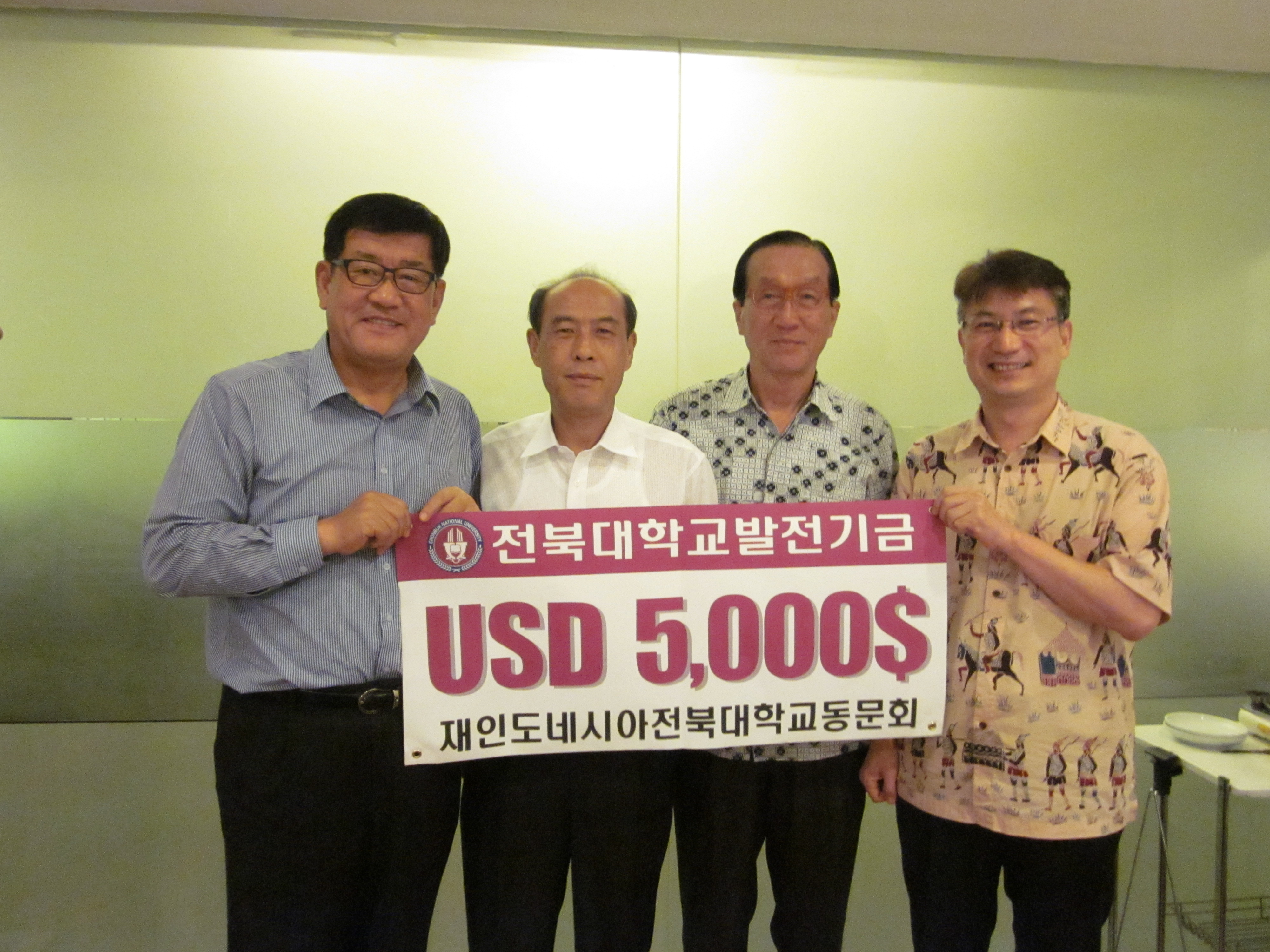 김두련 재인도네시아 동문회장은 “먼 타국에서 사업을 하고 있는 동문들이 국내를 넘어 세계적인 대학으로 성장하고 있는 모교의 소식을 접하고 조금이나마 힘이 되고 싶다며 발전기금 모금에 적극 나섰다”며 “이를 시작으로 동문들이 마음을 모아 해외에서도 모교 발전을 위한 전북대 동문들이 활발한 활동을 하고 있다는 사실을 알리고, 작게나마 모교 발전에 힘이 될 수 있도록 노력하겠다”고 말했다.