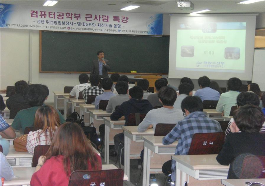 컴퓨터공학부(학부장 이효종)는 9월 26일 오후 5시 공대에서 학생들에게 폭넓은 취업 정보 제공을 위해 첨단 위성항법보정시스템(Differential Global Positioning System·이하 DGPS)을 주제로 한 취업특강을 실시했다.