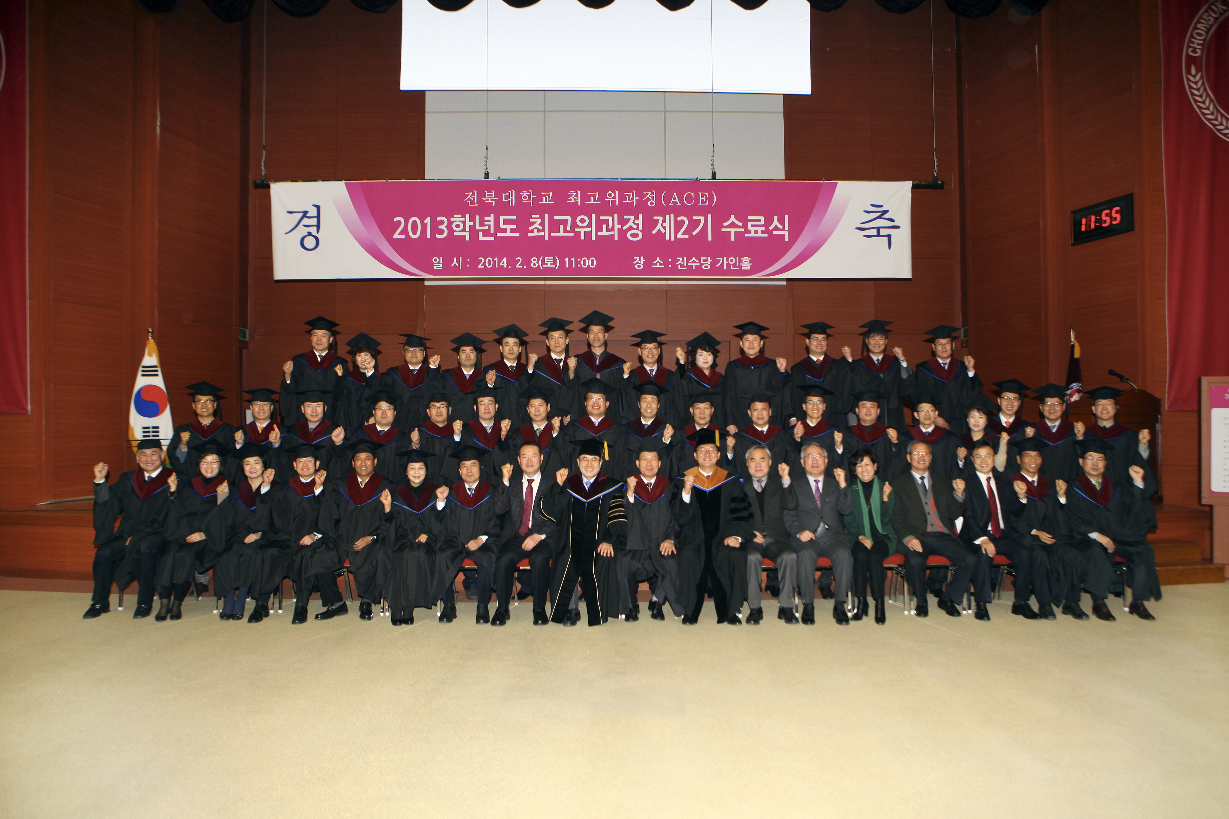 또한 지난 한 해 동안 최고위과정의 화합과 각종 사회봉사 등에 앞장선 최태호 (주)백광아이에스티 대표(2기 최고위과정 회장)가 최우수상을, 전년삼 (주)스카이타운 회장, 김순정 전북재향군인여성회장이 우수상을 받는 등 우수 수료자에 대한 시상식도 이어졌다.