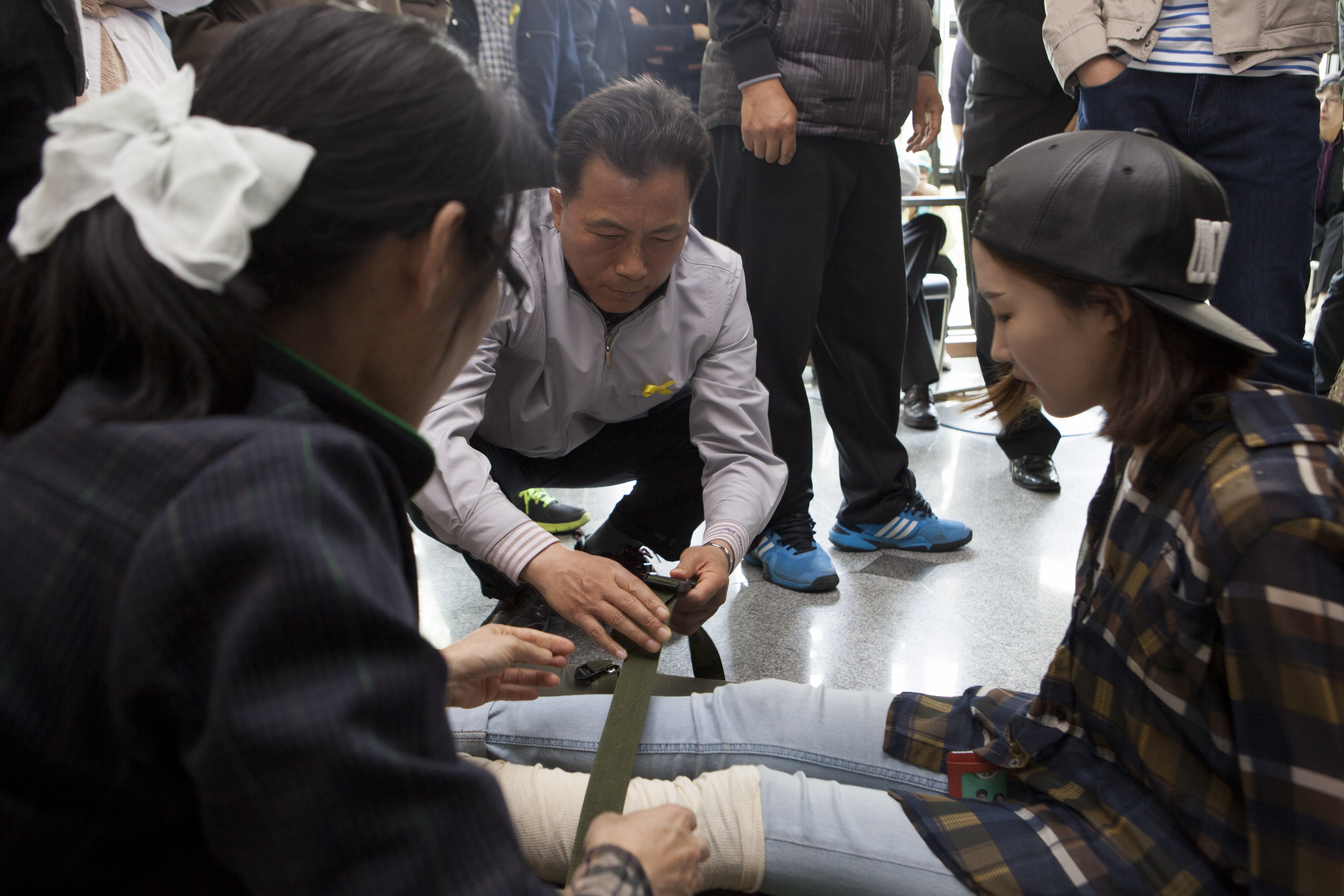 외국인 학생들이 많이 거주하는 참빛관에서 이뤄진 이날 합동 소방훈련에서는 화재 상황을 가상해 대피요령과 환자 구호, 화재 초기 진압 등을 매뉴얼대로 직접 훈련했다. 특히 외국인 학생들을 위해 한국어와 영어, 중국어 등 3개국 어로 훈련이 진행됐다.