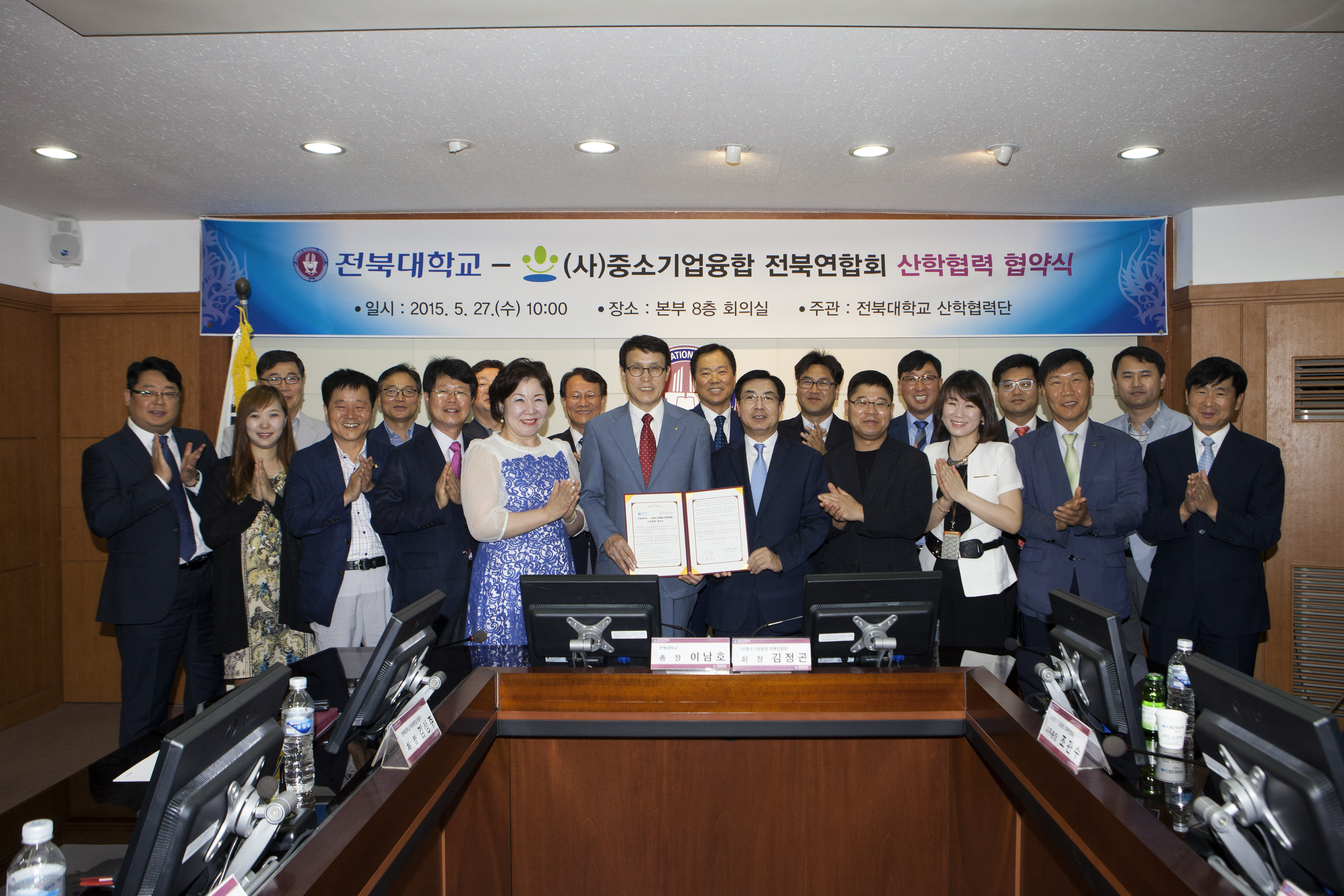 우리대학과 (사)중소기업융합 전북연합회는 5월 27일 오전 10시 전북대 본부 8층 회의실에서 이남호 총장과 김정곤 회장 등 양 기관 주요 관계자들이 참석한 가운데 협약식을 갖고 긴밀한 교류를 약속했다.