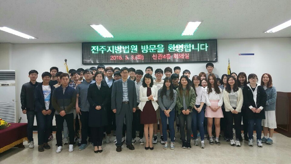 이날 허강무 학부장을 비롯해 1학년 학생 40여 명은 전주지방법원을 찾아 청사를 둘러보고 홍보영상물 시청 및 실제 재판을 방청했다.