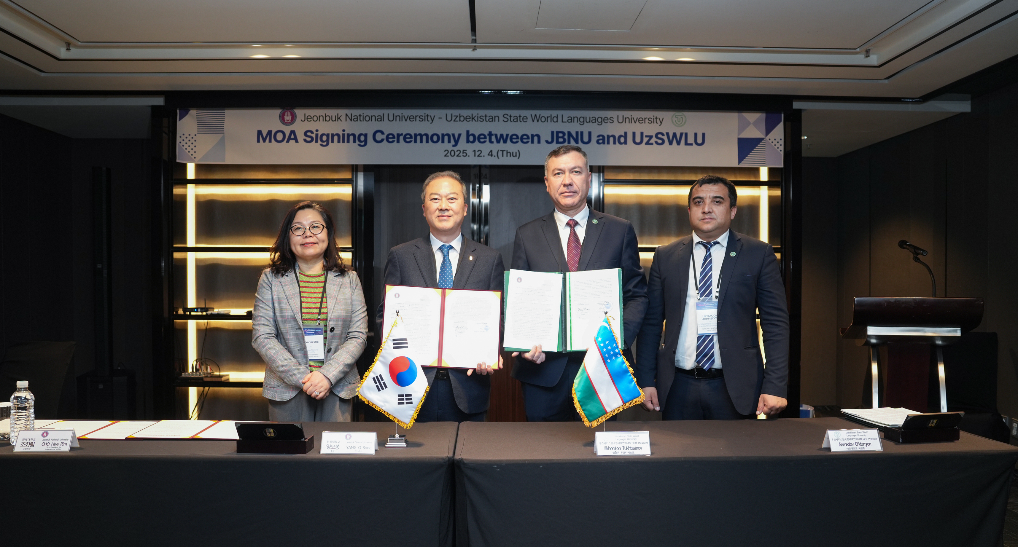 President Yang O-bong said, "The signing of this memorandum of agreement will greatly broaden exchanges between the two universities," adding, "The combination of JBNU's excellent education and research infrastructure and the Uzbekistan State World Languages University's growth potential will create a win-win model of cooperation for both institutions."