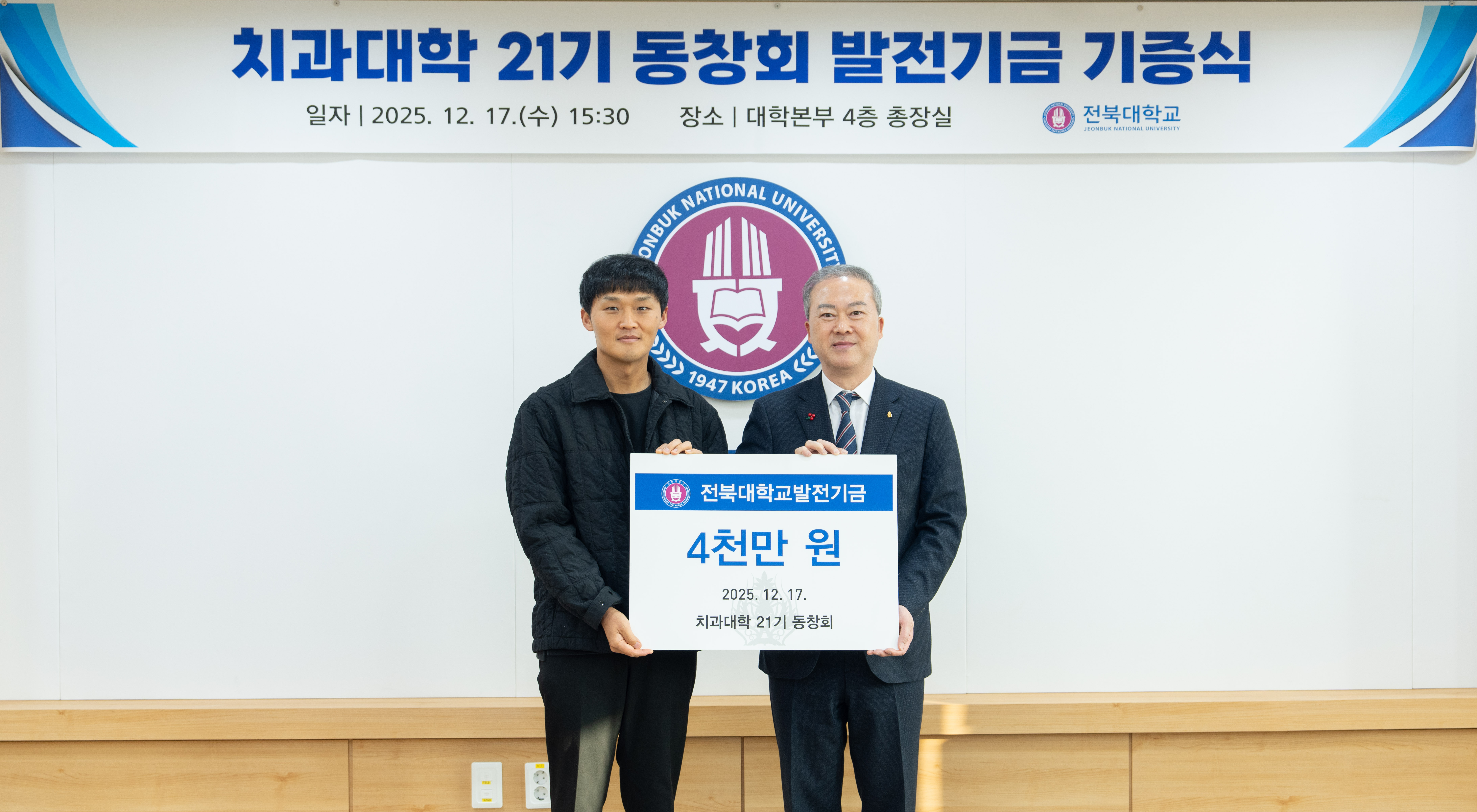 Yang Oh-bong, President of Jeonbuk National University (JBNU), said, "I sincerely thank the 21st alumni association of the College of Dentistry for demonstrating their deep affection for their alma mater and firm commitment to the university's development," adding, "We will honor this generous intention and do our best to ensure that the College of Dentistry develops into a cradle for nurturing world-class talent."