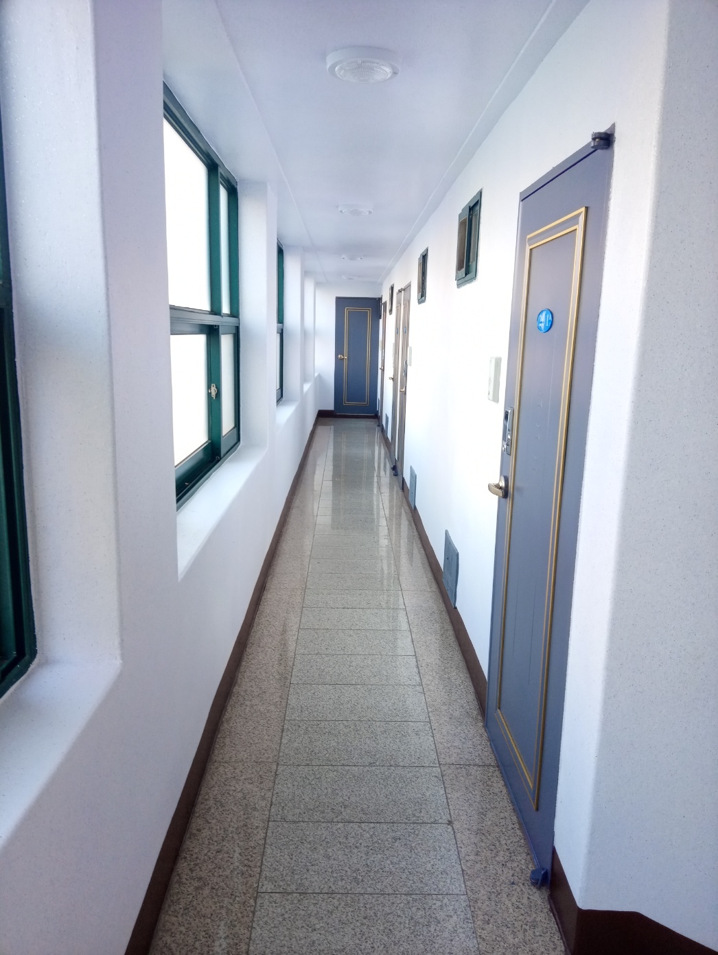 원룸 배치가 한쪽으로 된 복도형이고 맞은편은 창문이어서