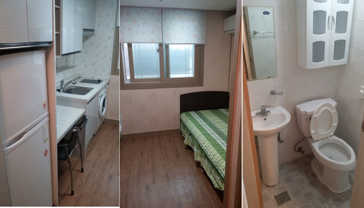 ◎ 풀옵션 : 침대, 세탁기, 싱크대, TV, 전자레인지, 에어컨, 냉장고, 붙박이장, 유선방송, 인터넷 등