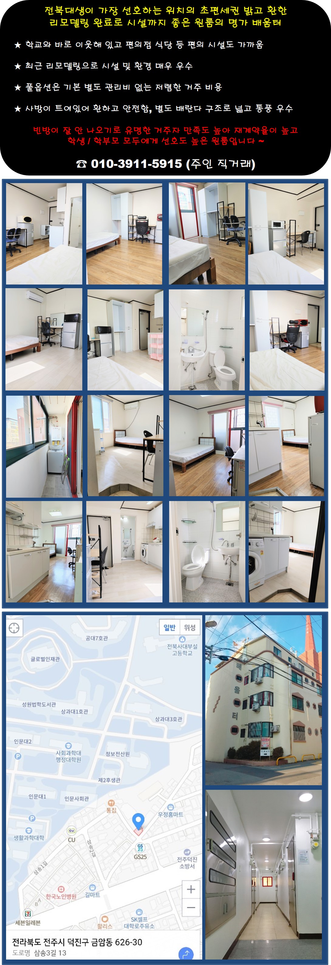 [최고위치 / 인기원룸 / 리모델링완료] 모두가 가장 선호하는 최고 위치에 리모델링되어 넓고 환한 깨끗한집 - 거주 만족도 높아 재계약율 높은 최고 인기 원룸