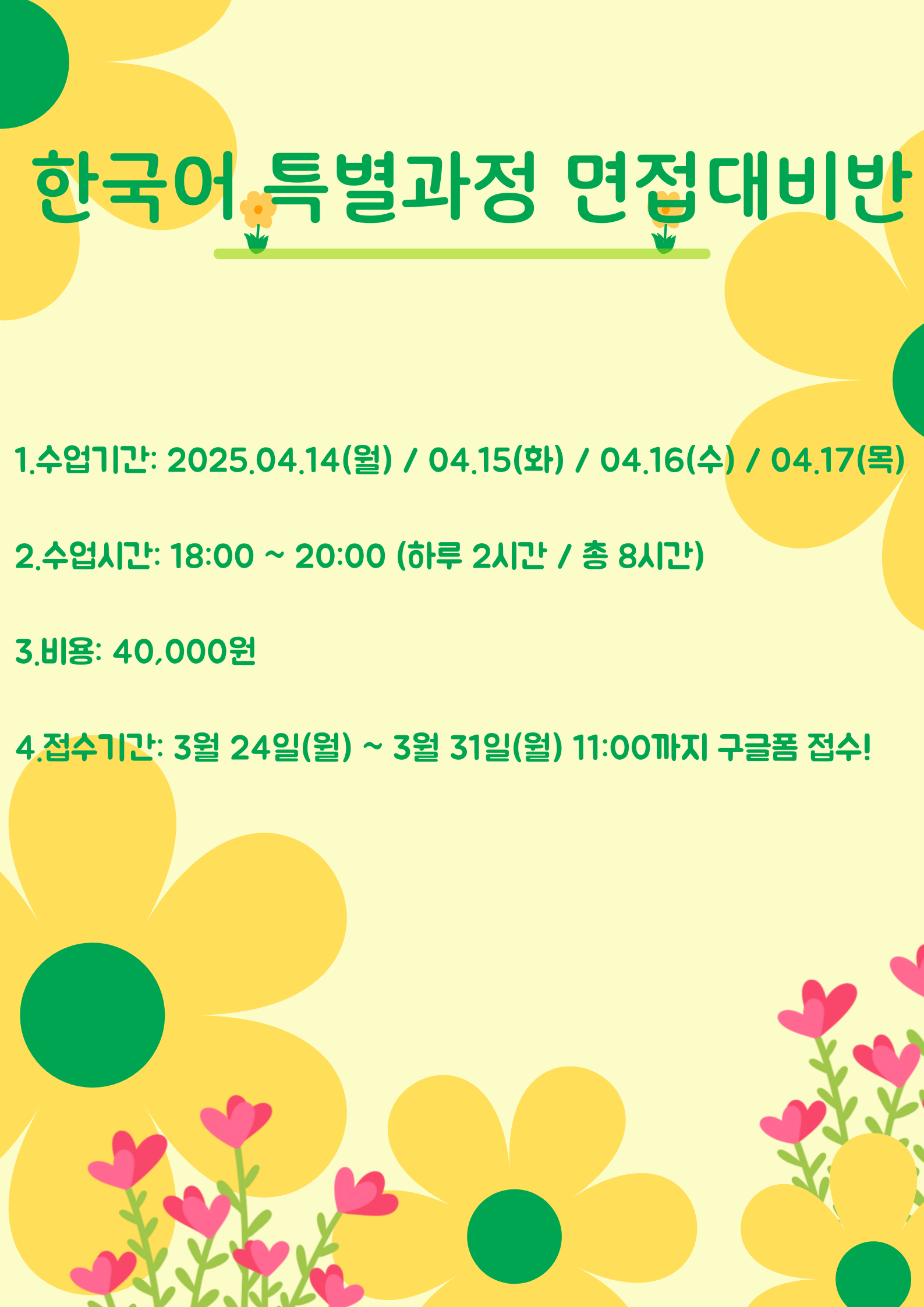 ○ 수강료 납부기간 : 4월 1일(화)까지