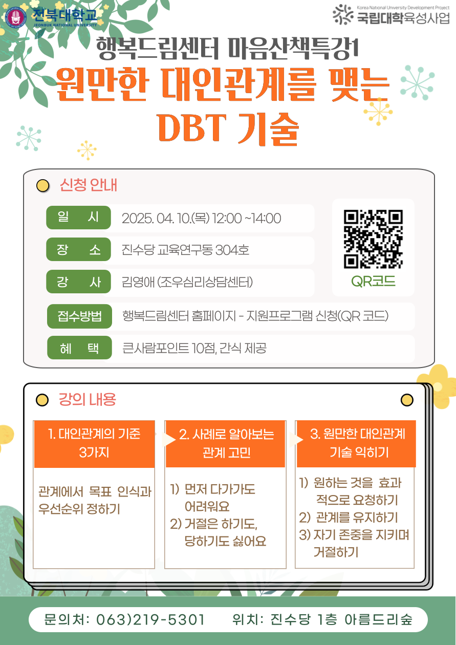 ● 마음산책특강1 '원만한 대인관계를 맺는 DBT 기술'