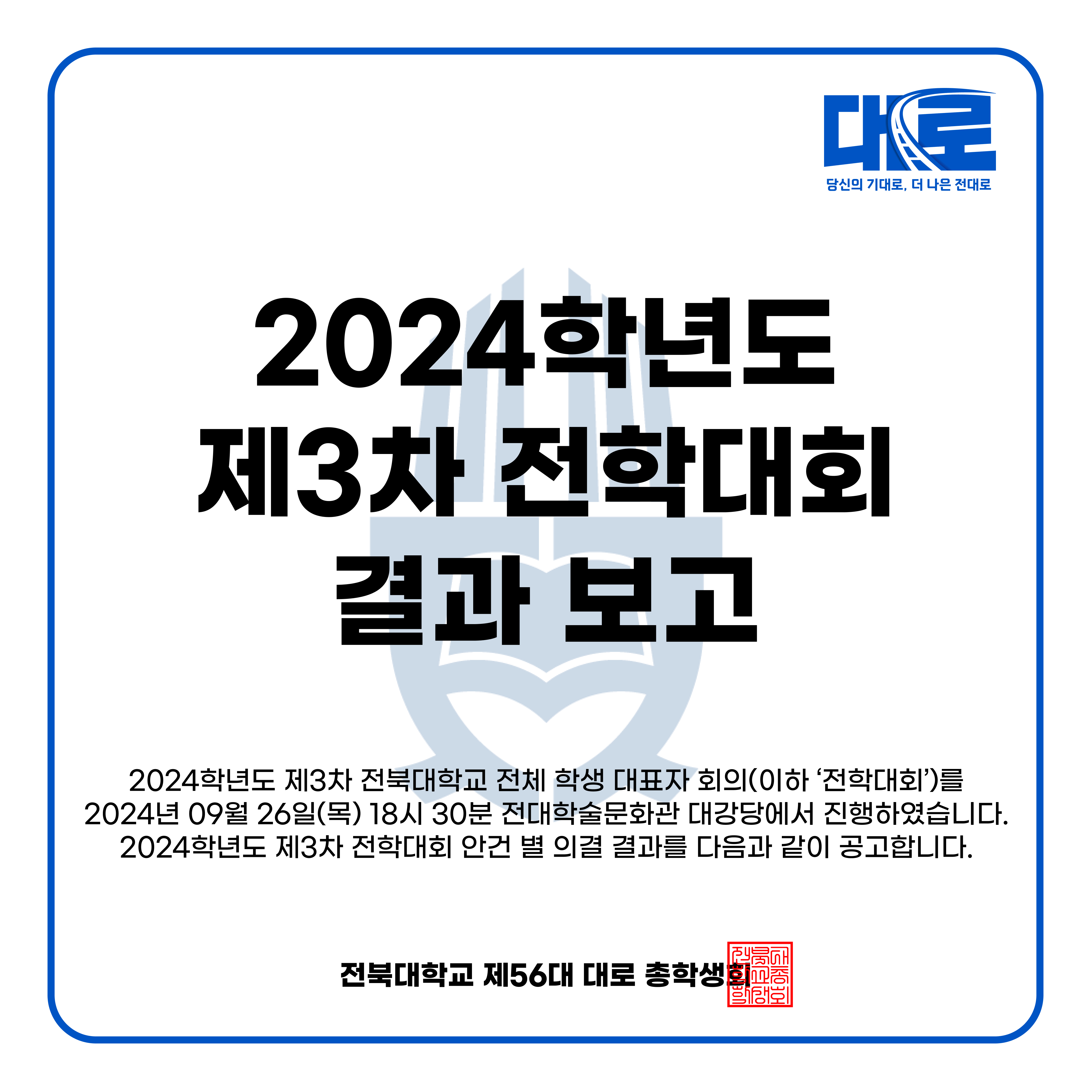 2024년 9월 26일 목요일에 진행한 2024학년도 제3차 전학대회 결과를 다음과 같이 공고합니다.