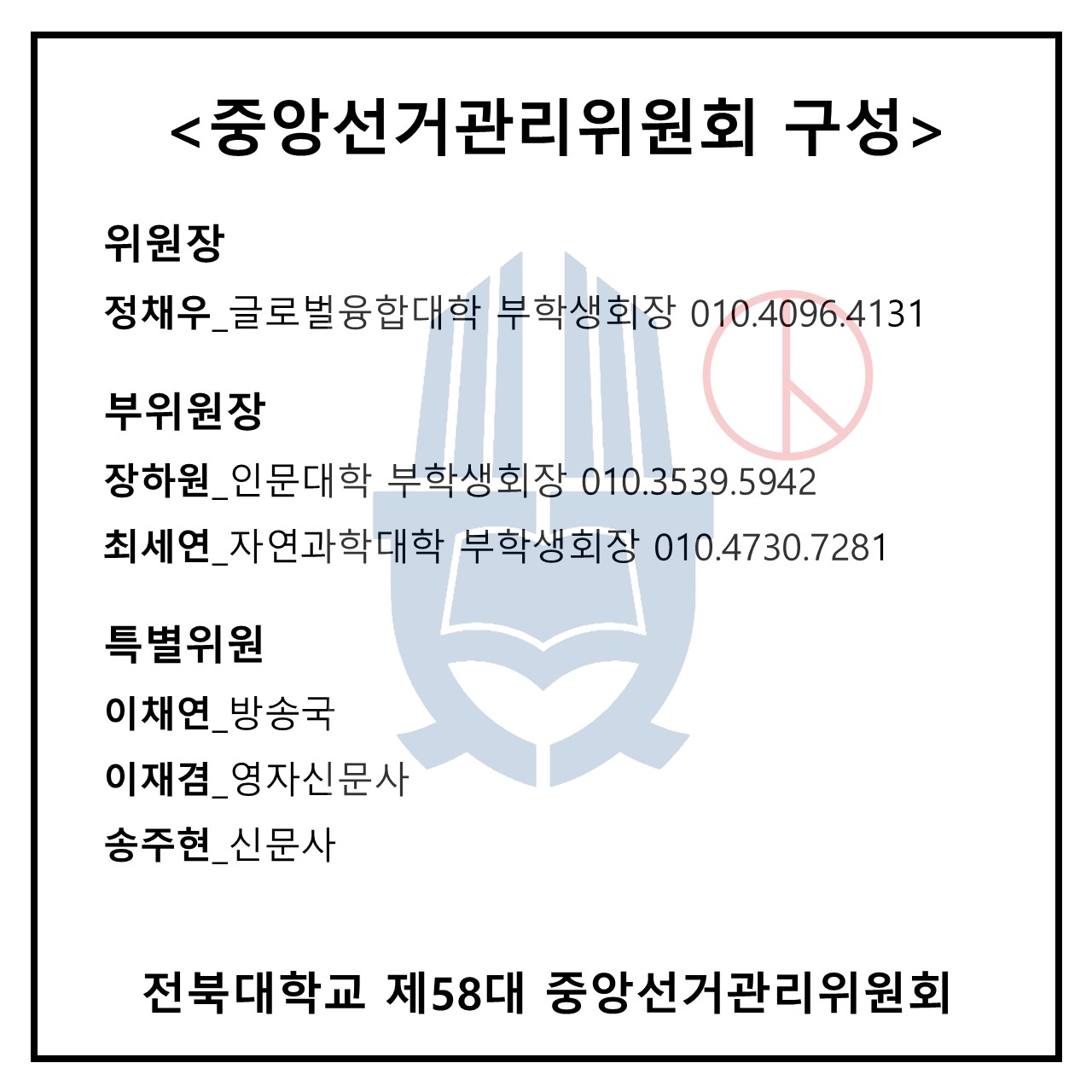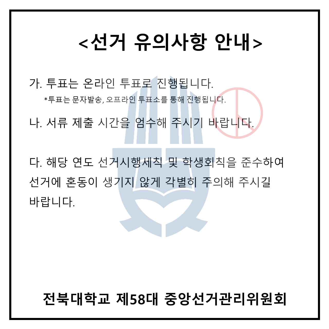 문의: 중앙선거관리위원장 정채우 010-4096-4131