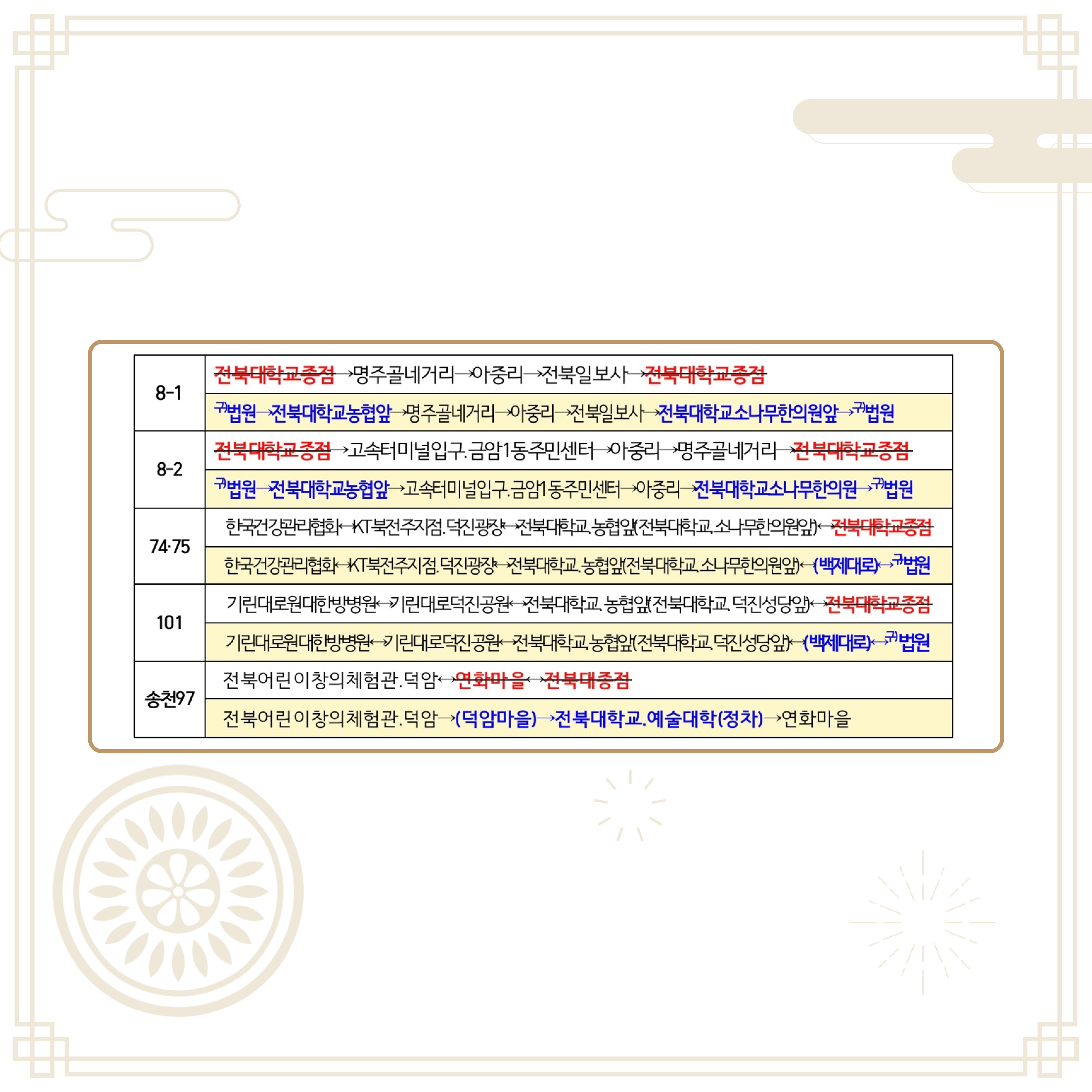 세계한인비즈니스대회 기간 내 전북대학교 시내버스 회차지 이전에 따른 노선변경 안내