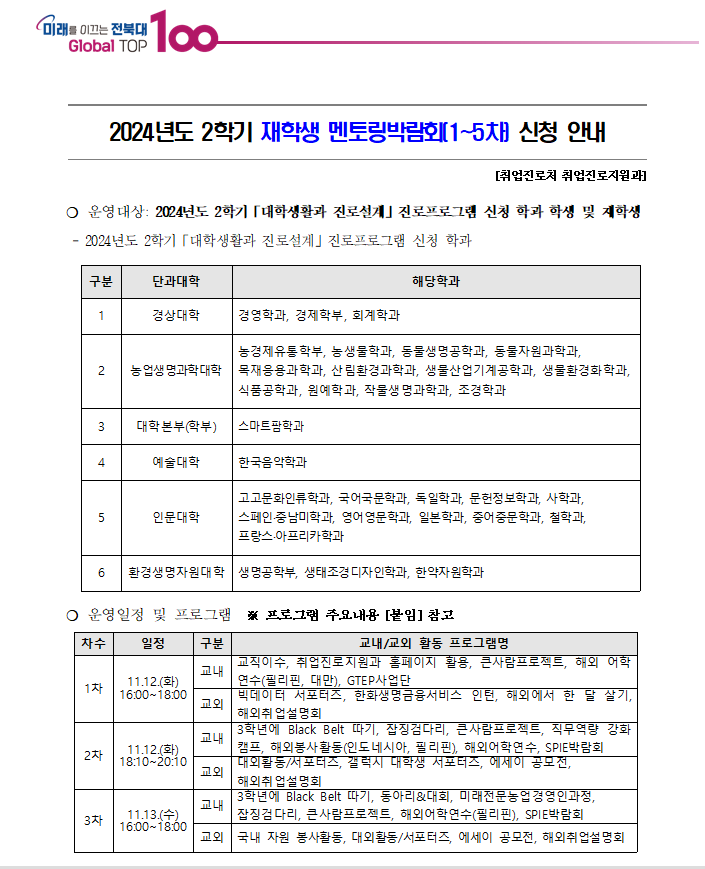 ※프로그램 신청 : https://career.jbnu.ac.kr/sites/career/index.do