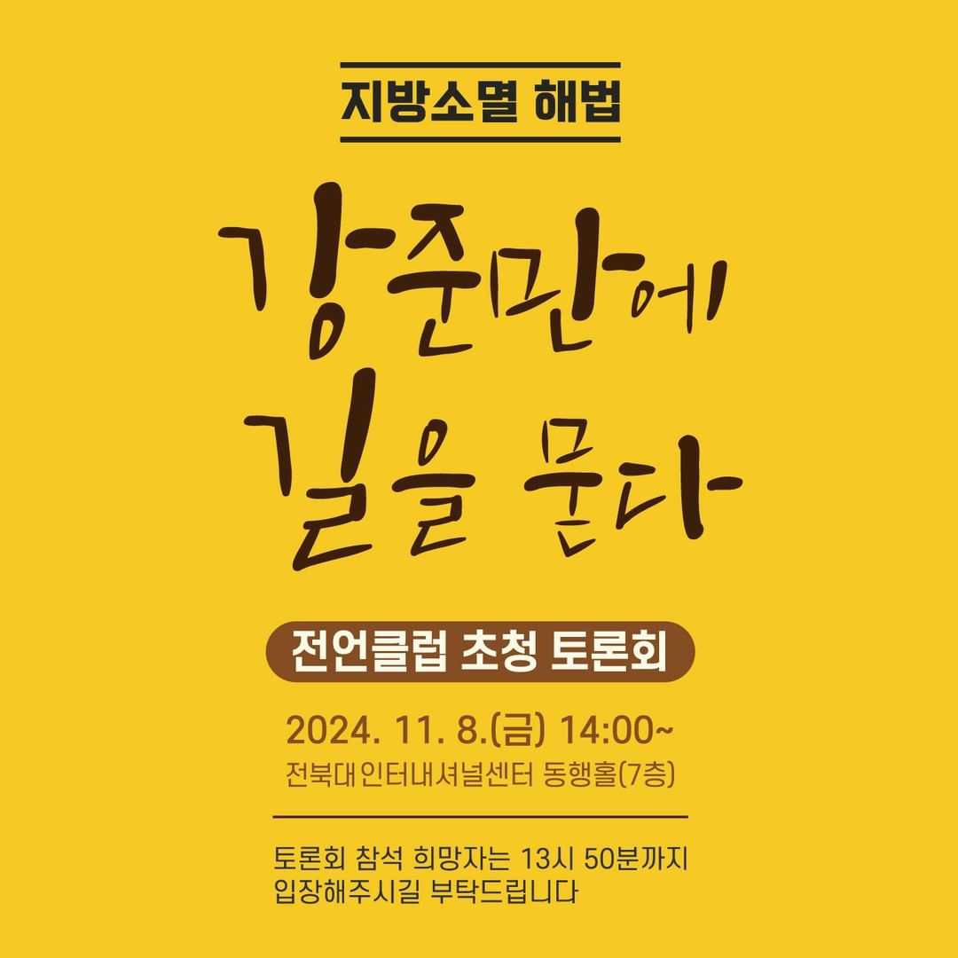강준만 명예교수 초청 토론회는 오는 8일 오후 2시 전북대 JBNU 인터내셔널 센터에서 개최됩니다.