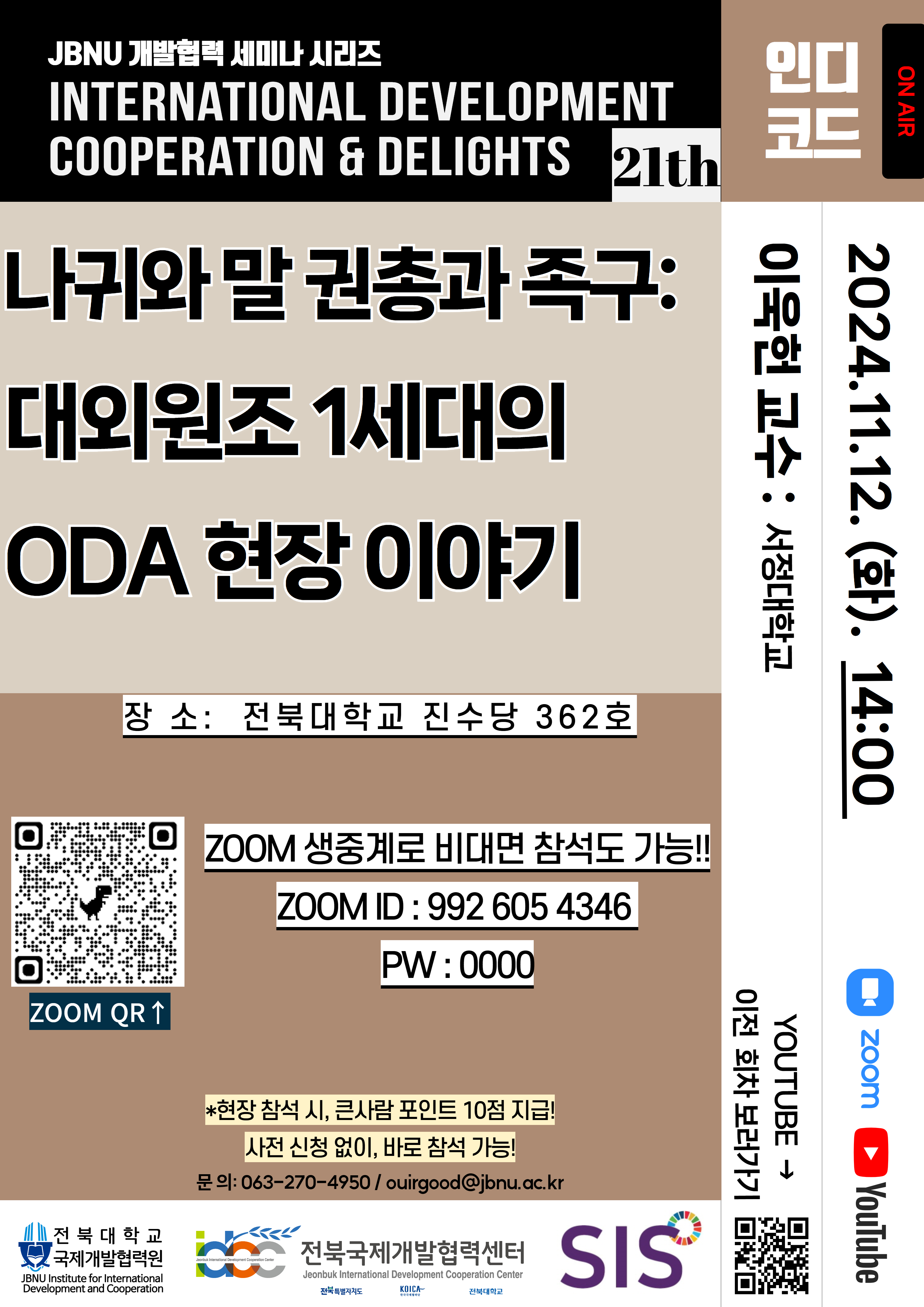 JBNU 개발협력 세미나 시리즈: 인디코드(International Development Cooperation & Delights)가